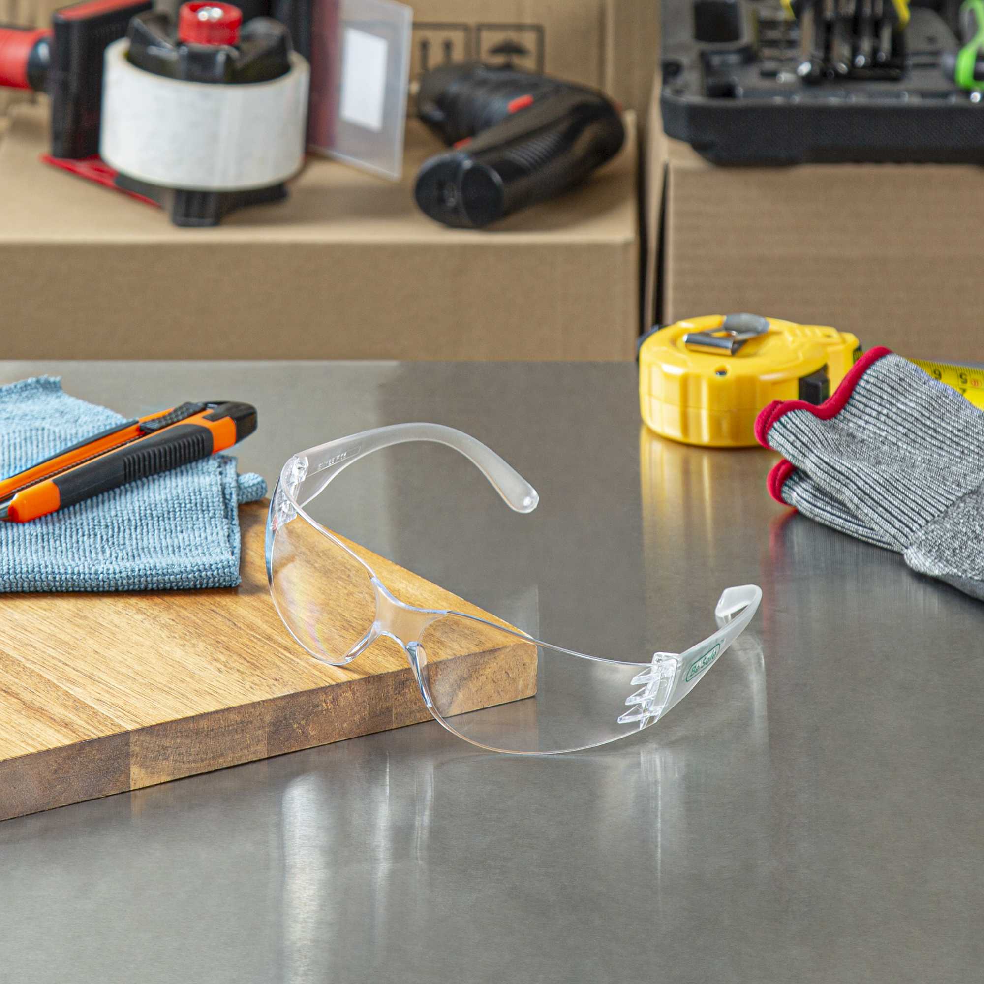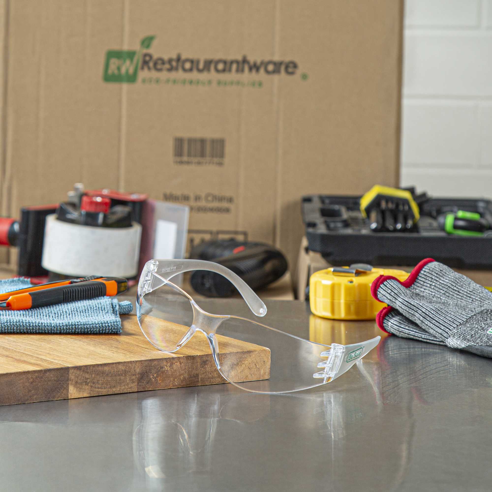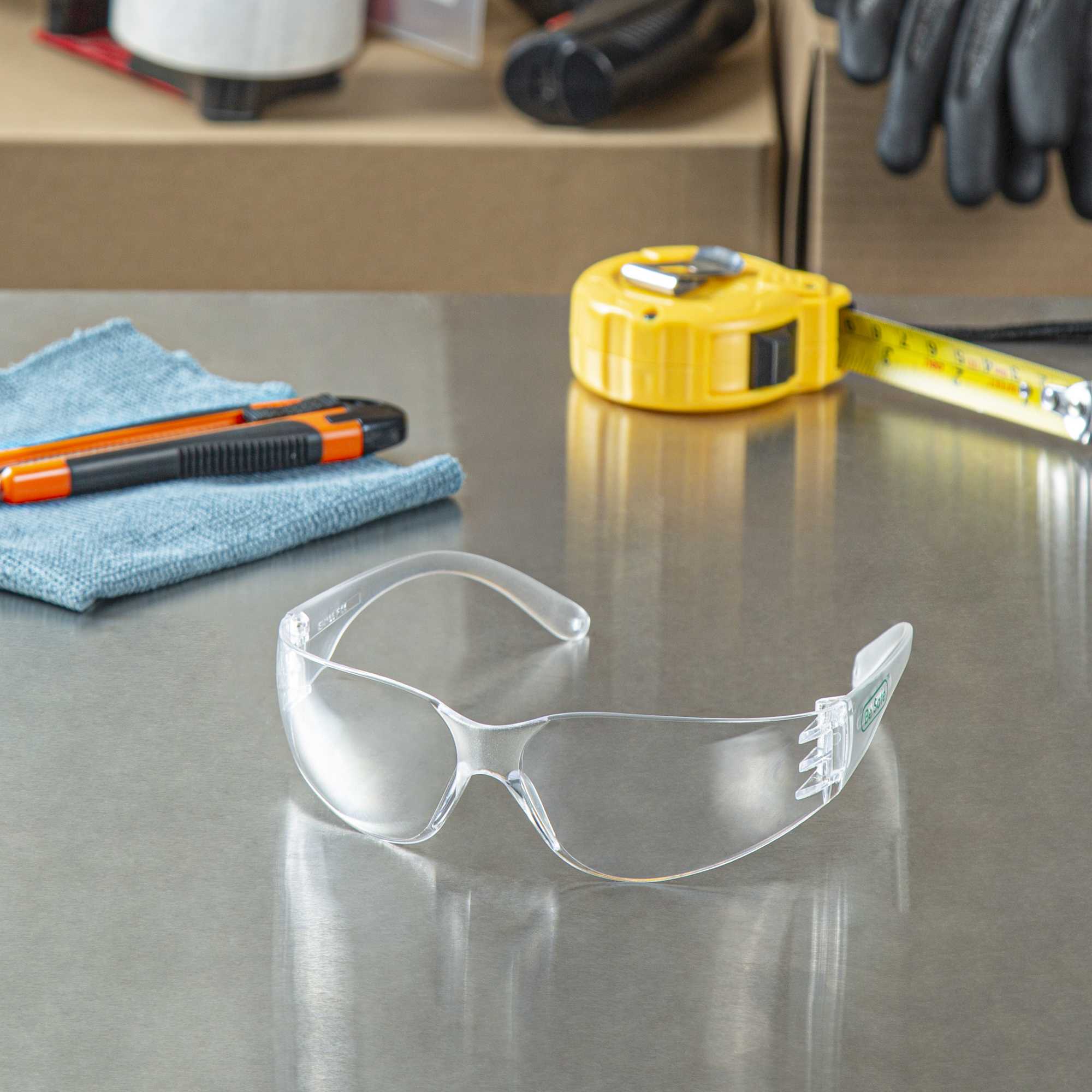 Ensure optimal eye protection in bustling kitchen environments. Be Safe Safety Glasses provide unparalleled eye safety with their impact-resistant design, safeguarding your vision from flying debris. These anti-fog safety glasses feature an anti-fog lens that guarantees clear visibility even in steamy kitchens, ensuring chefs and kitchen staff can focus on their culinary creations without interruption. The polycarbonate safety glasses are crafted from durable plastic, offering reliable protection and longevity, despite the hustle and bustle of busy environments. Measuring 6.30 inches in width and 1.57 inches in height, these glasses provide a comfortable fit for extended wear. Upgrade your kitchen team's safety gear today with these recyclable glasses, designed to withstand the demands of professional kitchens. Each order includes 10 glasses.