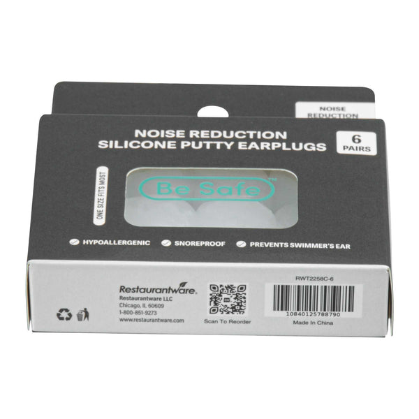 Enhance kitchen focus with noise-reducing comfort. Be Safe Noise-Reducing Silicone Ear Plugs provide a moldable design that effectively cancels distracting noises in bustling kitchen environments, making them essential noise cancelling ear plugs for culinary professionals. Their compact 0.67-inch by 0.67-inch form ensures these moldable ear plugs can be easily stored in a pocket, granting chefs and staff quick access when needed. Crafted from recyclable silicone, these earplugs for adults support sustainable kitchen operations, aligning with eco-conscious foodservice practices. The clear color and moldable nature offer discreet and adaptable usage, ensuring a snug fit for prolonged wear without discomfort. Invest in these silicone earplugs for adults to maintain a tranquil atmosphere in your busy kitchen. Each order includes 120 pairs.