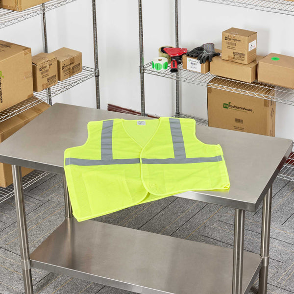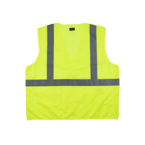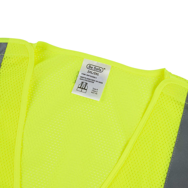 Ensure worker safety with enhanced visibility apparel. The Be Safe Breakaway Safety High Visibility Safety Vest in lime, made from breathable plastic, offers a breakaway design that ensures quick removal if caught on machinery, significantly reducing the risk of injuries. This high visibility safety vest is equipped with reflective stripes that enhance visibility in dim settings, making it a crucial reflective safety vest for nighttime operations. The vest's pocket stores tools and order forms efficiently, optimizing convenience for busy work environments such as construction sites. With dimensions of 29.21 inches in length by 30.32 inches in width, its lightweight and machine-washable construction add to its practical benefits, while the breathable polyester mesh fabric keeps users comfortable throughout their shifts. Elevate your safety protocols today with this construction safety vest. Sold in a 1 count box.