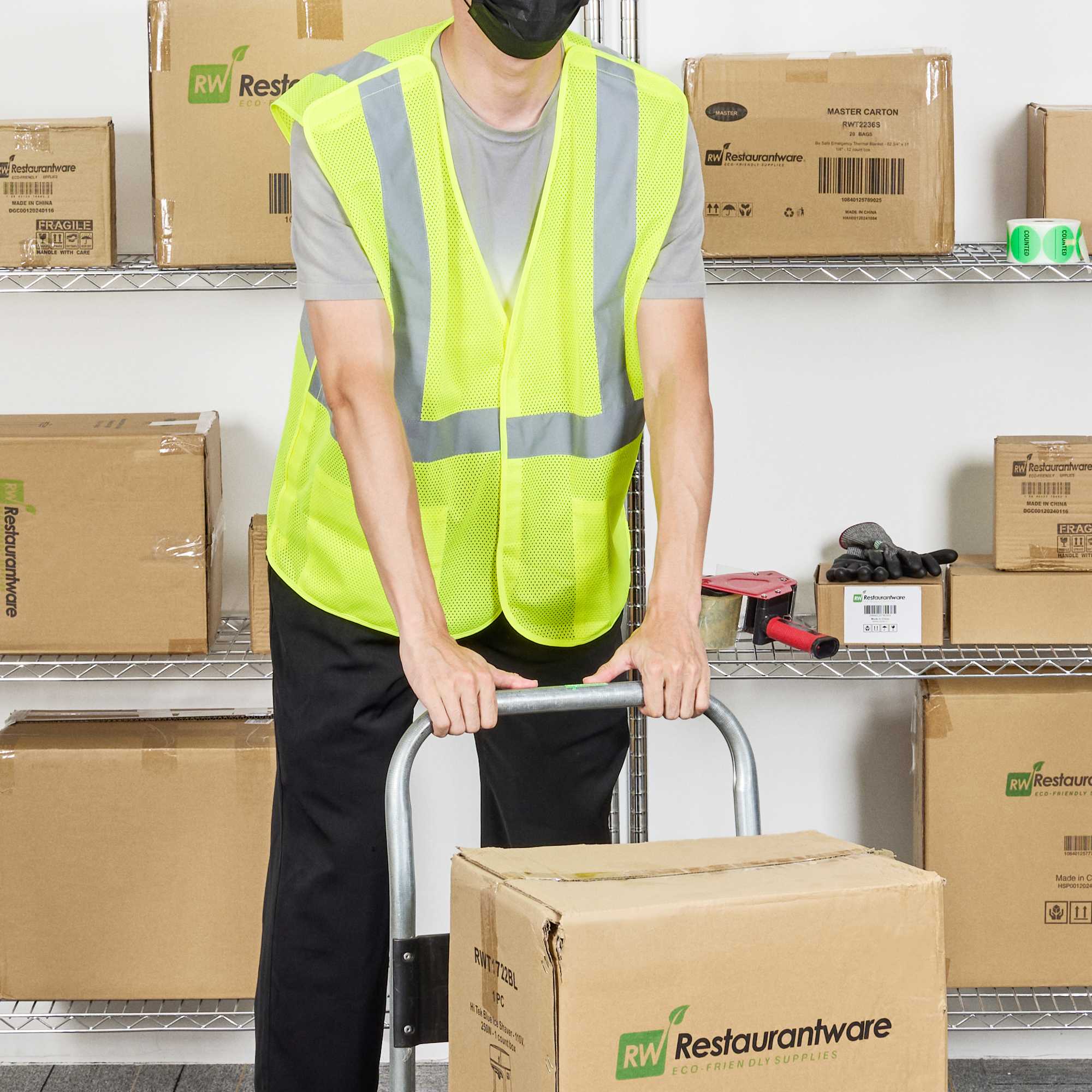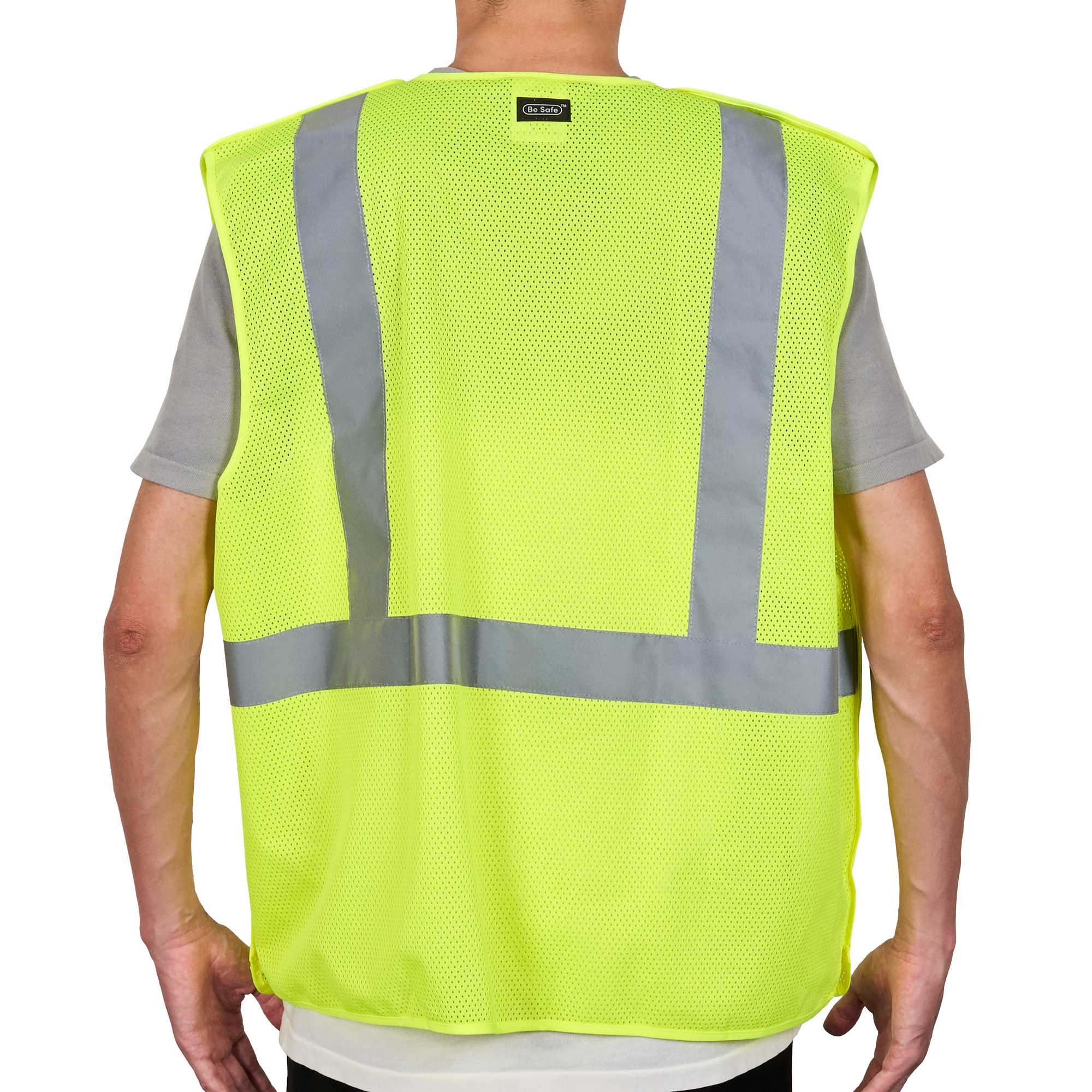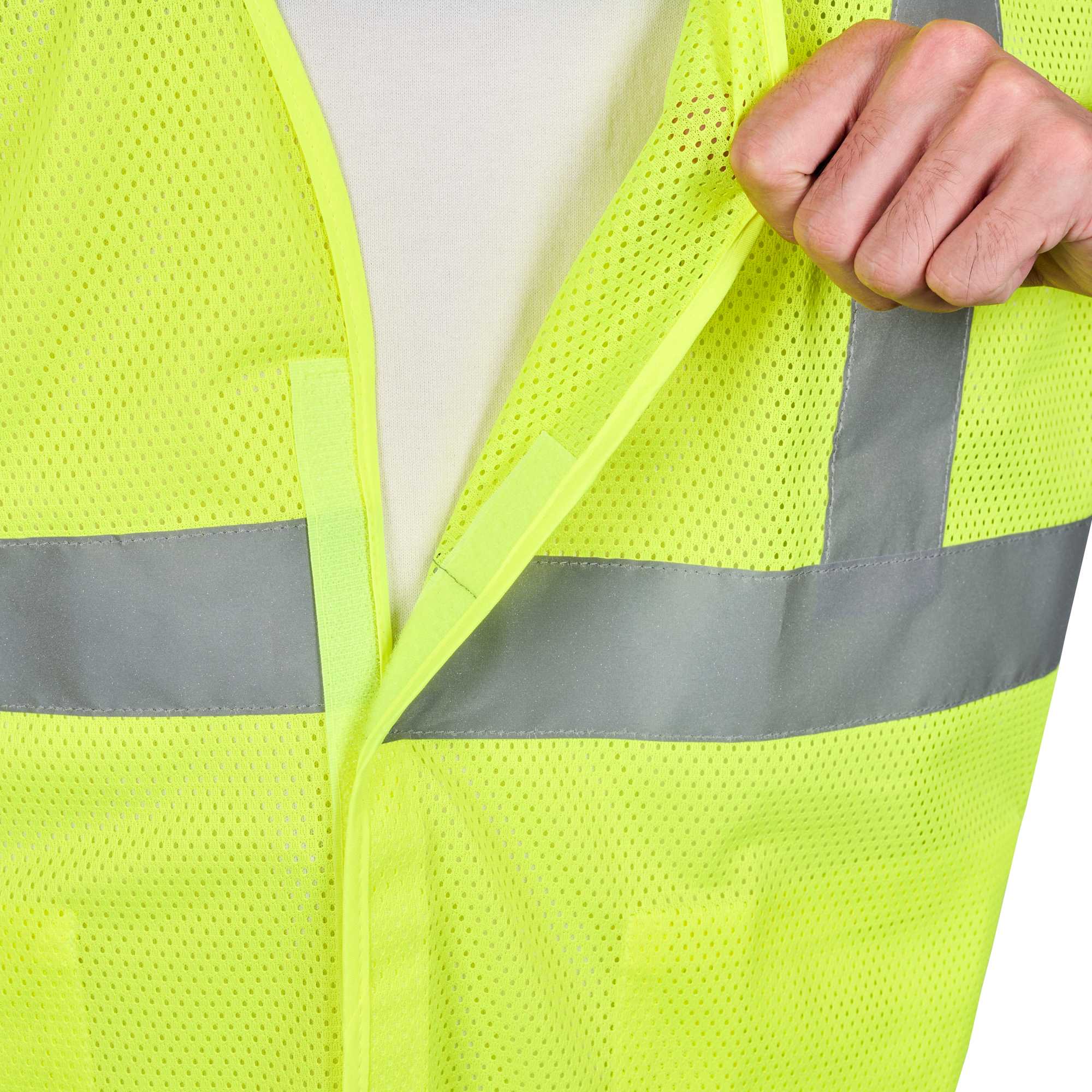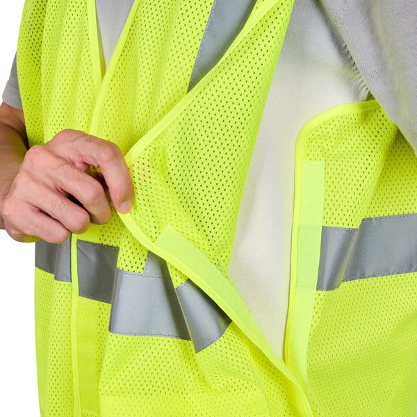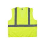 Ensure worker safety with this breakaway design vest. The Be Safe Breakaway-Safe High Visibility Vest - Lime, Plastic, Reflective Compliance, Machine Washable, 27.99 inches x 27.56 inches x 0.20 inches, features a crucial breakaway design that ensures quick removal if snagged, enhancing safety in dynamic environments. This high visibility vest incorporates reflective tape to enhance worker visibility in low-light conditions. The breathable polyester mesh construction keeps staff comfortable, while inside pockets are ideal for storing order pads and pens, promoting efficiency in fast-paced kitchens. This reflective work vest is machine washable, allowing for easy maintenance. Equip your team with this indispensable safety tool today. Sold in a 1 count box.