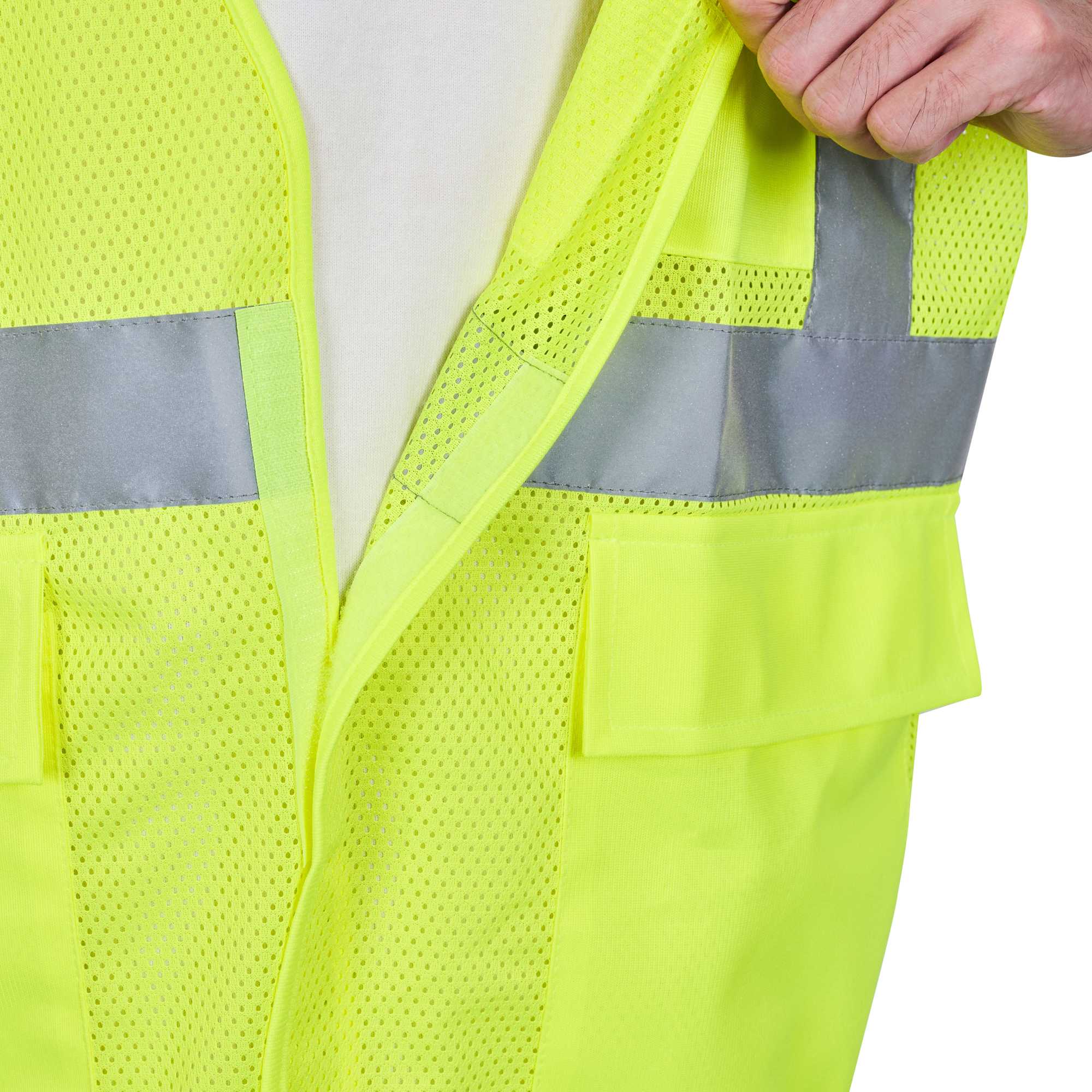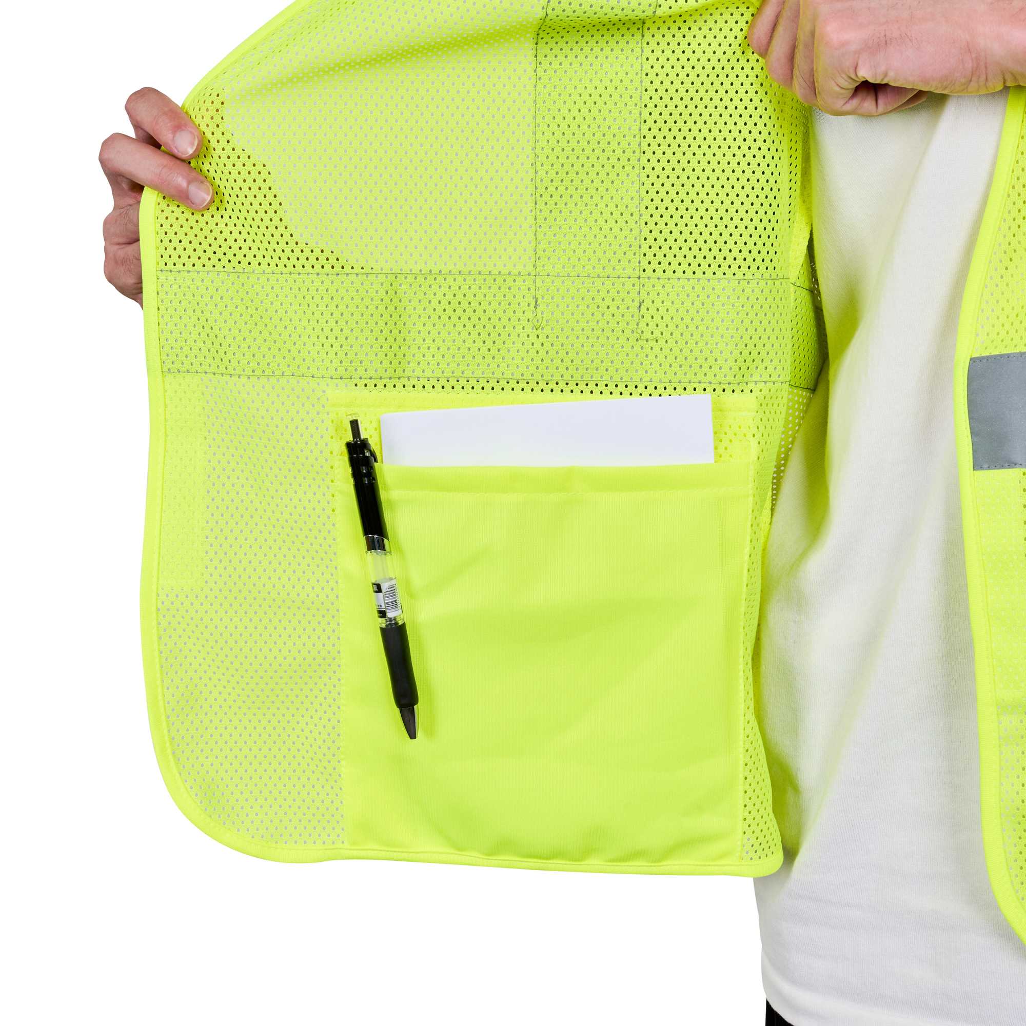 - Polyester mesh enhances airflow to keep workers cool in high-activity environments