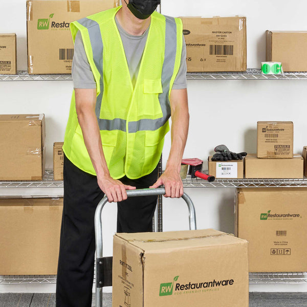 Enhance jobsite visibility with our Be Safe Type R Class 2 Lime S/M High Visibility Mesh Safety Vest. Designed in a vibrant lime color, this mesh safety vest features reflective tape that boosts visibility in low-light and high-risk environments. Built with breathable polyester mesh, this high-visibility vest ensures optimal airflow, keeping workers cool throughout extended shifts. Outfitted with a hook-and-loop closure, this reflective vest offers a quick and secure fit, minimizing delays during busy transitions. Multiple built-in pockets provide convenient access to tools, notepads, or small essentials. Made from machine-washable plastic, this construction vest is also recyclable to support sustainable work practices. Measuring 27.2 inches in length by 24.8 inches in width, this hi-vis vest meets the needs of commercial and industrial safety applications. Sold in a 20 count box.