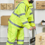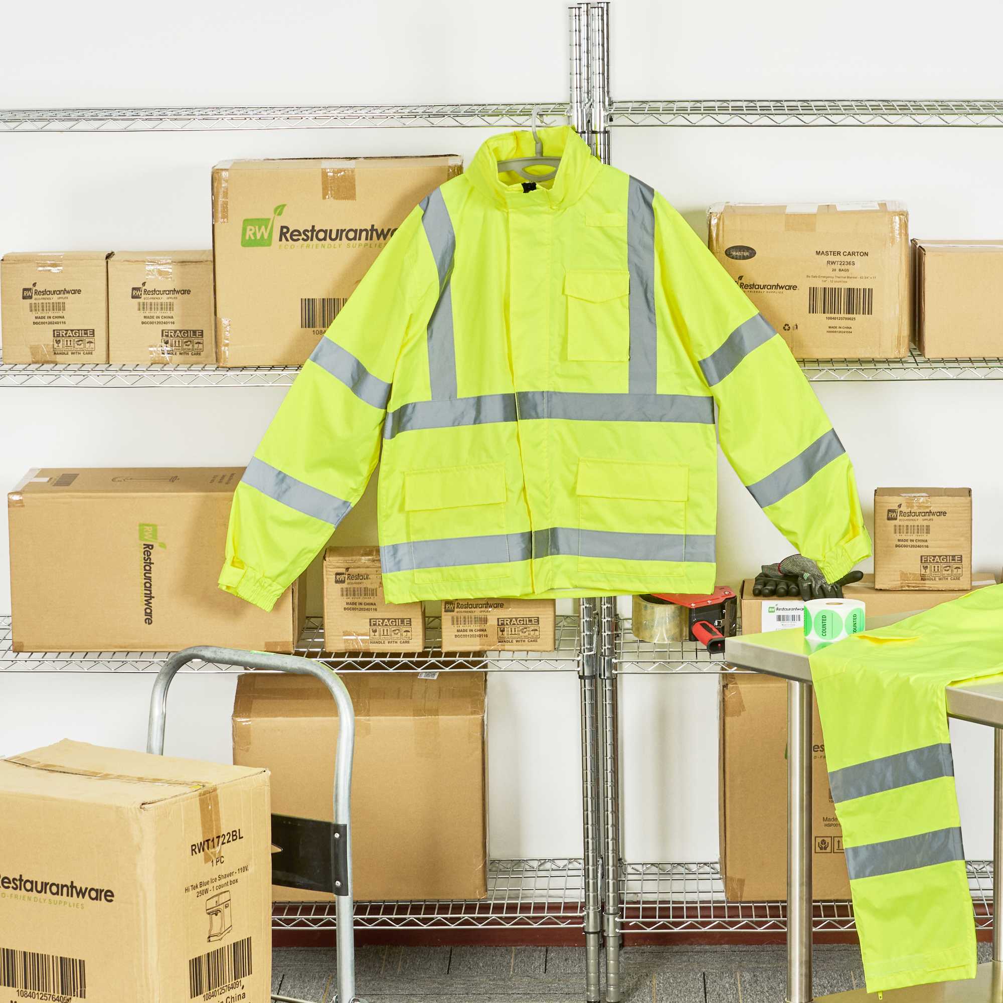 Enhance worker safety and visibility in challenging conditions. The Be Safe Reflective Rain Jacket's hi-vis reflective tape significantly improves worker safety in low-light environments, making it indispensable for high-risk settings. With its Class 3 reflective properties, this high visibility rain coat is crafted from recyclable plastic, offering breathable, hi-vis protection ideal for summer days. Featuring a detachable hoodie, it provides customizable weather protection, ensuring comfort and adaptability in various conditions. The 100% waterproof design, complete with stitched and taped seams, guarantees dry and secure wear, while the zipper front closure ensures quick and secure fastening. Measuring 30.98 inches in length and 25.98 inches in width, this waterproof safety jacket is machine washable, facilitating easy maintenance and longevity. Sold in a 20 count box.