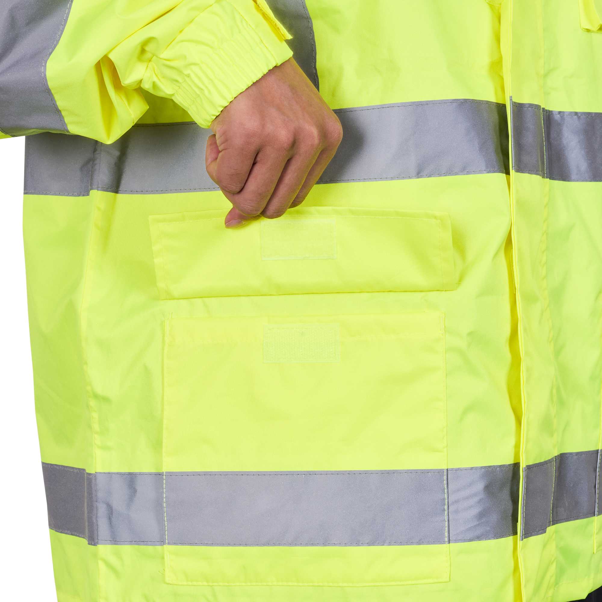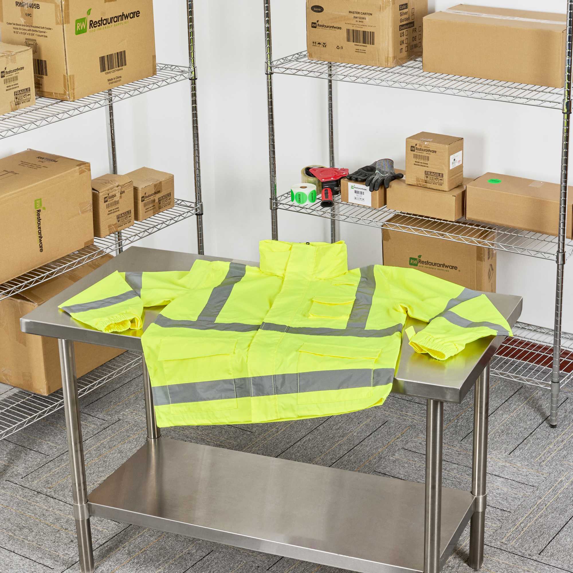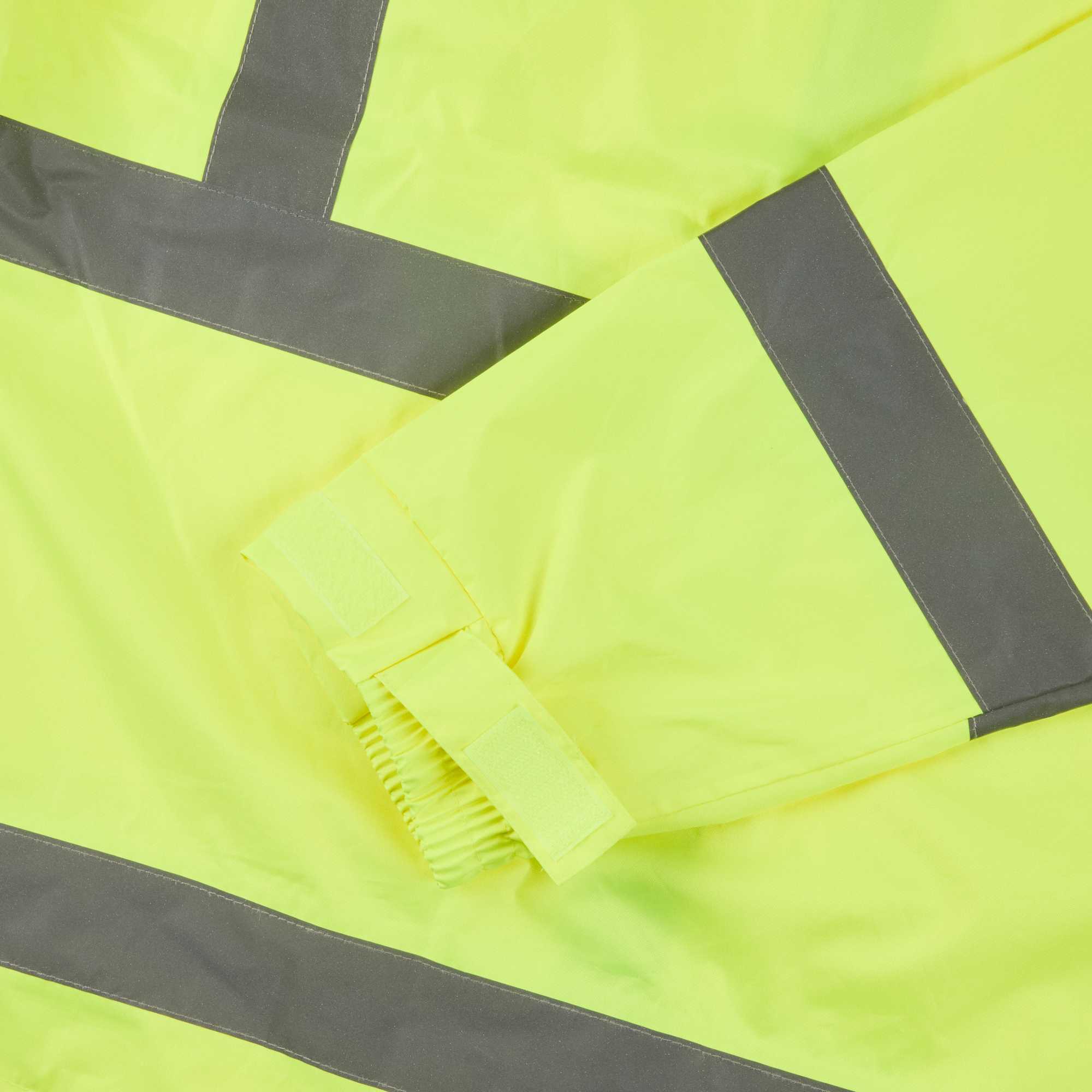 Enhance visibility in high-risk environments with this reflective rain jacket. The Be Safe High-Visibility Reflective Rain Jacket - Lime, Plastic, Waterproof, Windproof, 24.02 inches x 0.39 inches x 30 inches, features high-visibility stripes that significantly enhance safety during busy operations. This waterproof safety jacket is crafted from durable plastic and includes adjustable sleeve openings to ensure a comfortable fit for long shifts, making it an essential piece of hi-vis rainwear. With a detachable hoodie, this jacket offers adaptability in varying weather conditions, providing reliable protection against unexpected showers. Additionally, its 100 percent waterproof design with stitched and taped seams guarantees dryness, while the breathable material offers comfort even on hot summer days. Sold in a 1 count box.