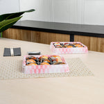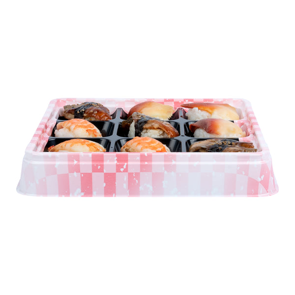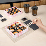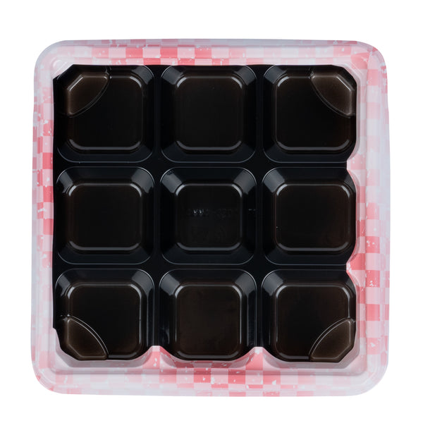 17 OZ SQUARE PINK AND BLACK PLASTIC BENTO BOX - 9 COMPARTMENTS