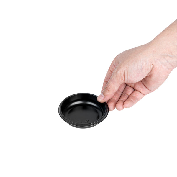 2 OZ ROUND BLACK PLASTIC SAUCE DISH