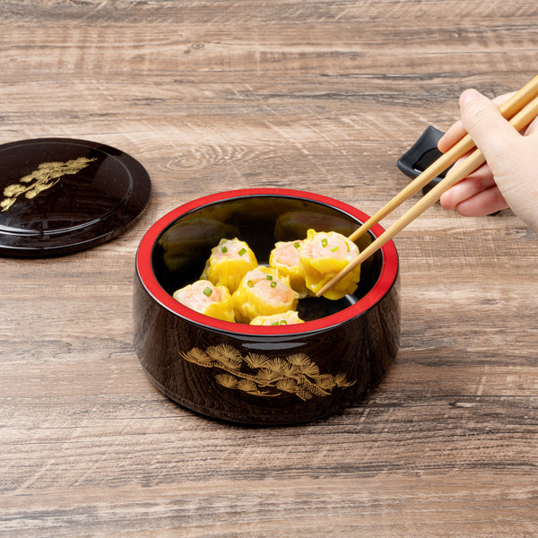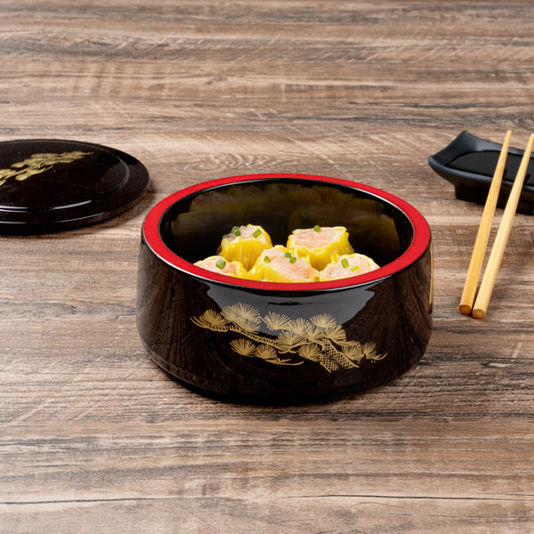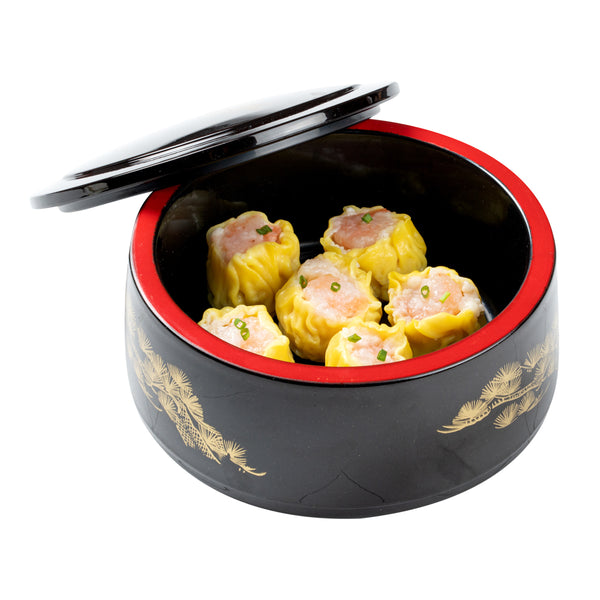 Effortlessly prep meals for the next day with our Bento Tek 25-Ounce Round Black Japanese Style Bento Box. Featuring a lid, this bento lunch box completely covers the opening to keep food from falling out and making a mess. Constructed from ABS plastic, this food prep container can hold hot or cold food so you can pack up a variety of meals. This bento box container has a lacquered interior and is greaseproof to ensure sauces or dressings do not seep through. For a simple and time-saving cleaning process, this meal prep container can be dishwashed. With a black finish and beautiful branch image, this bento box container is sure to match your lunch bags. Containing up to 25 ounces, this meal prep container measures 6.5 inches long by 3.25 inches wide. Sold in a 1 count box.