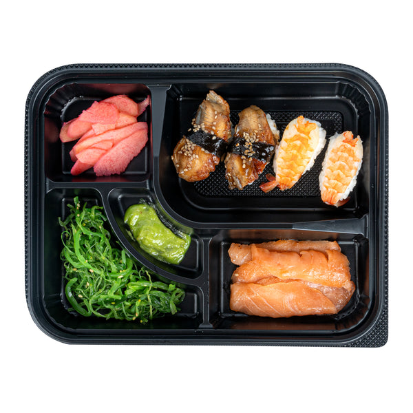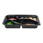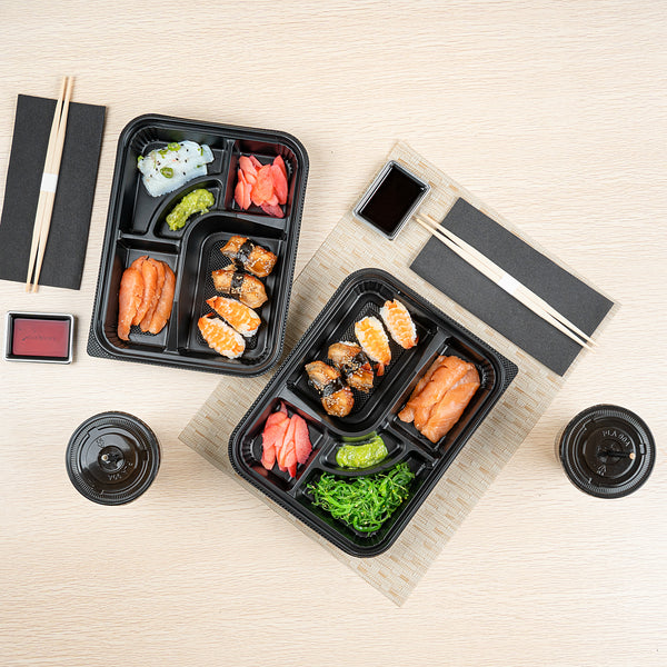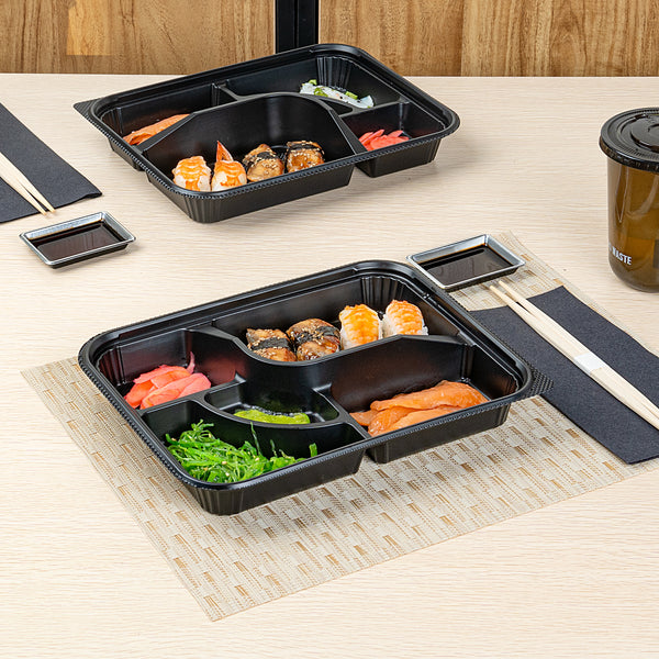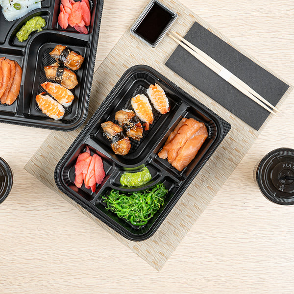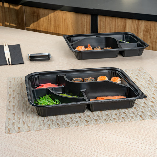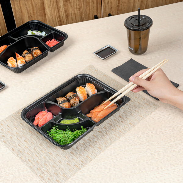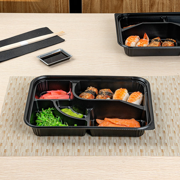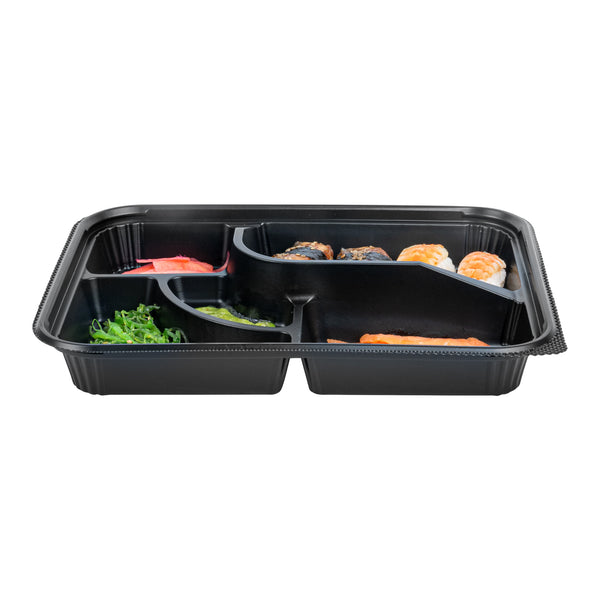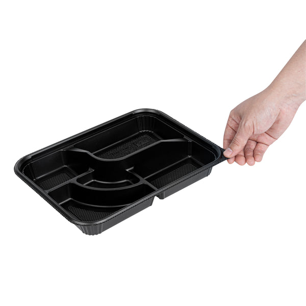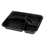 26 OZ RECTANGLE BLACK PLASTIC BENTO BOX - 5 COMPARTMENTS