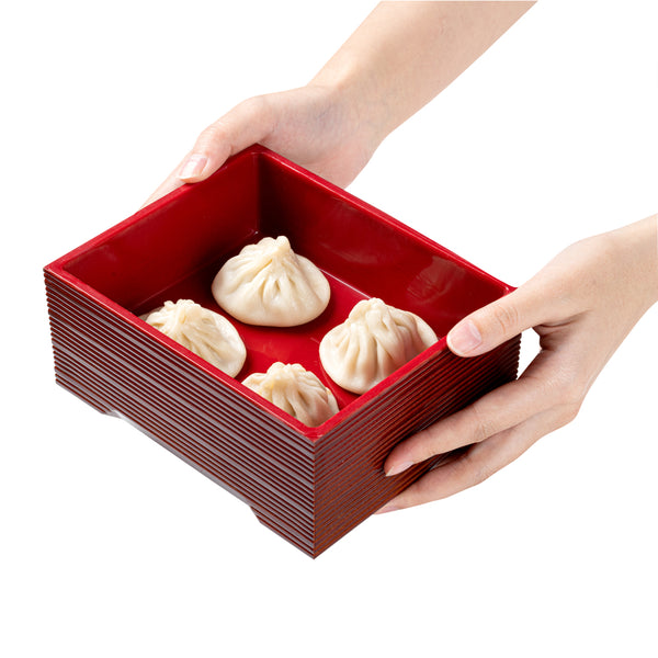 Easily pack up your unagi in our Bento Tek 27-Ounce Brown Japanese Style Unagi Bento Box. Designed with a lid, this bento box ensures your sushi stays securely contained during transport. Made from ABS plastic, this bento lunch box is capable of holding hot or cold food so you can pack up desserts or snacks. To keep oils from seeping through, this hot food container is greaseproof and has a lacquered interior. For easy cleanup after enjoying food, this plastic bento box is dishwashable. The wooden-like design of this bento box container creates a beautiful, Japanese-inspired look so you can stylishly take your meals with you. Holding up to 27 ounces, this food prep container measures 6.75 inches long by 5.75 inches wide by 3 inches tall. Sold in a 1 count box.