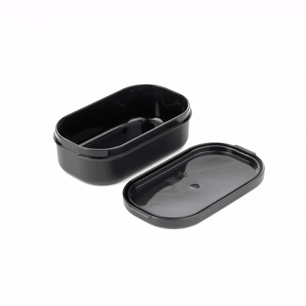 3 OZ BLACK BUDDHA BOX SNACK / SAUCE CONTAINER - WITH BLACK LID