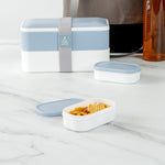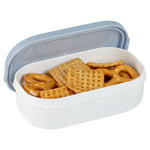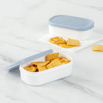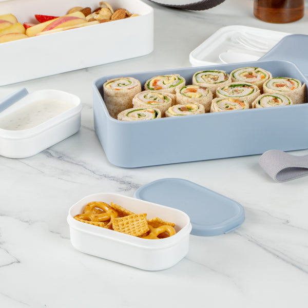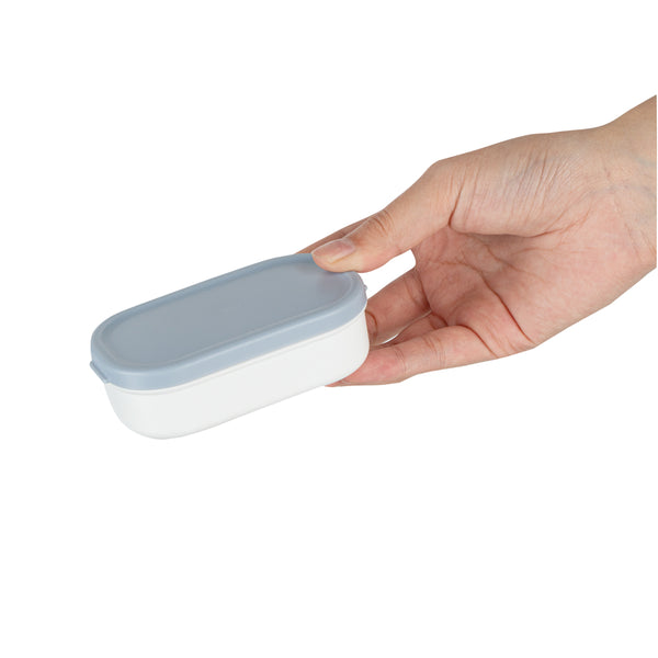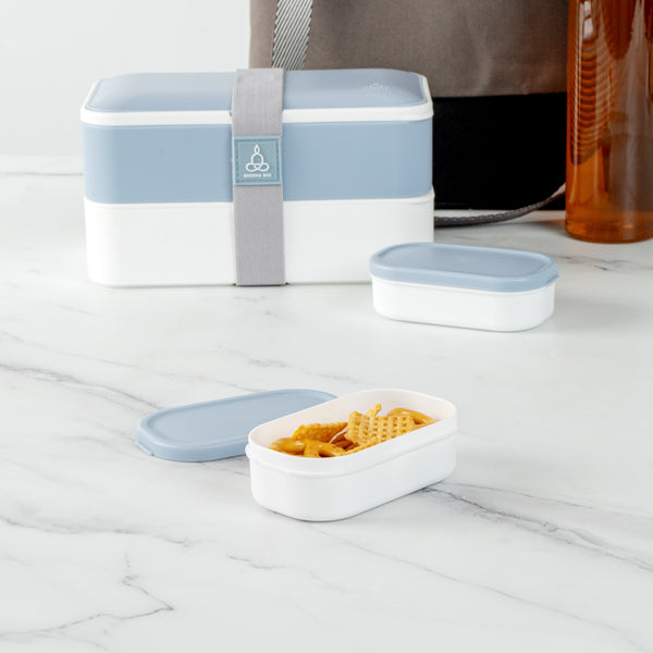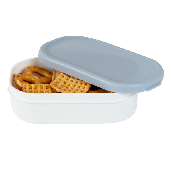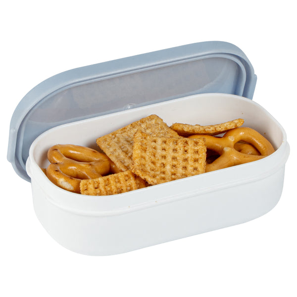 Easily take an extra side dish with our Bento Tek 3-ounce White Buddha Box Snack / Sauce Container. The combined white bowl with blue lid gives these condiment cups an elegant appearance that can be combined with our Buddha Box Lunch containers. These condiment cups can be heated in the microwave to make sure your dip is tasty and warm once you start eating. With a PP plastic construction, these small snack containers are dishwashable, making them great for long-lasting use. These small snack containers measure 3.75 inches long by 2.25 inches wide by 1.25 inches tall and contain up to 3 ounces of gummy bears. Sold in a 4 count box.
