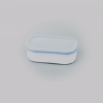 3 OZ WHITE BUDDHA BOX SNACK / SAUCE CONTAINER - WITH BLUE LID