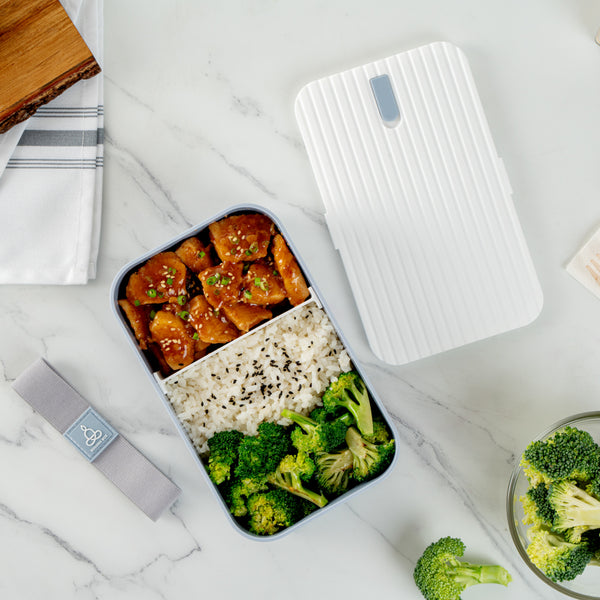 These reusable bento boxes are available in multiple color combinations to match your lunch bags or personal taste. Enjoy your breakfast, lunch, or dinner on the go with style!