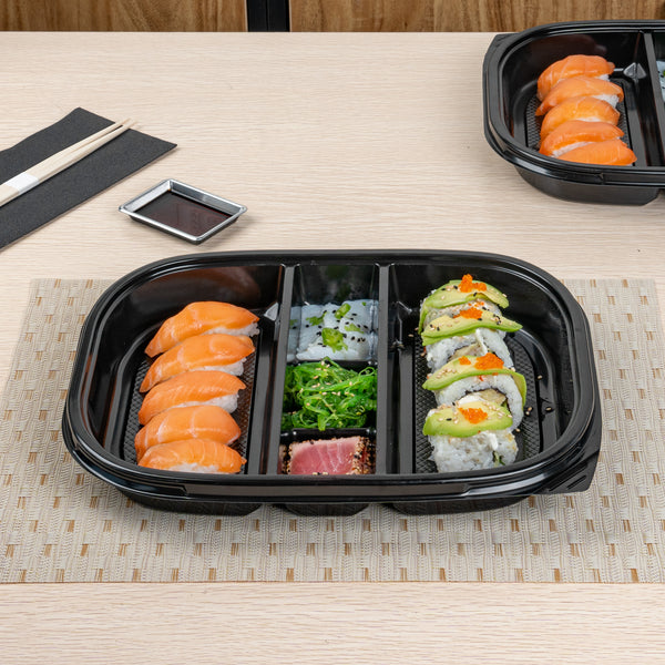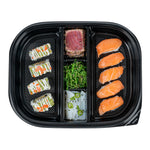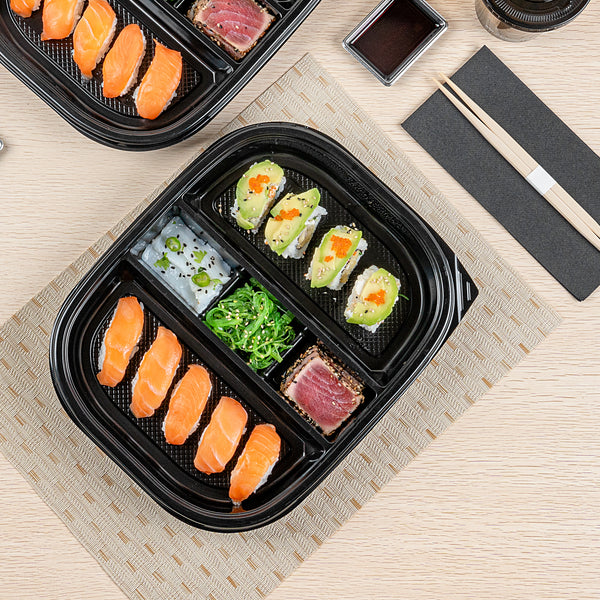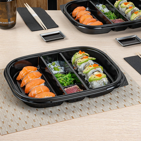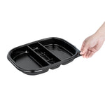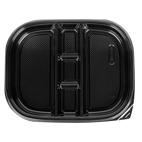 51 OZ RECTANGLE BLACK PLASTIC BENTO BOX - 5 COMPARTMENTS