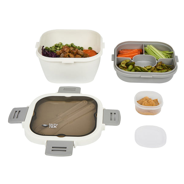 58 OZ WHITE AND GRAY LUNCH BOX - BPA-FREE, MICROWAVE-SAFE