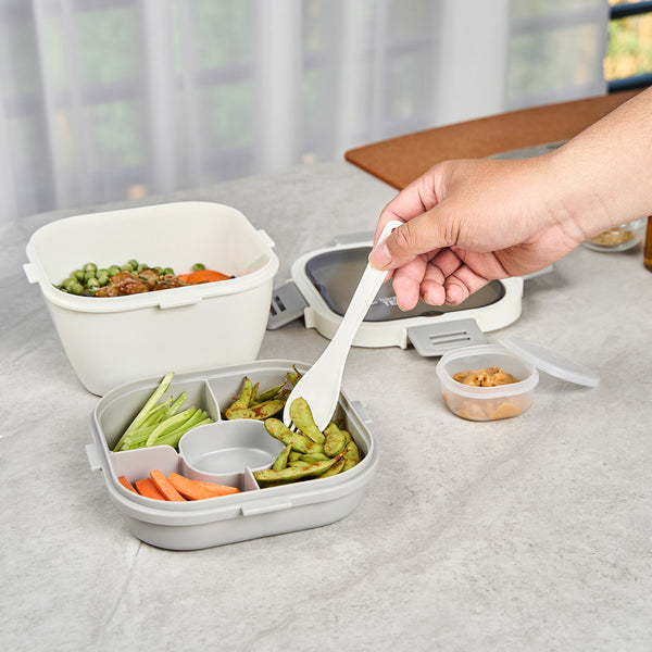 Ideal for busy lifestyles! These lunch containers come equipped with a set of reusable cutlery and makes it easy to have your meals whenever and wherever you want.