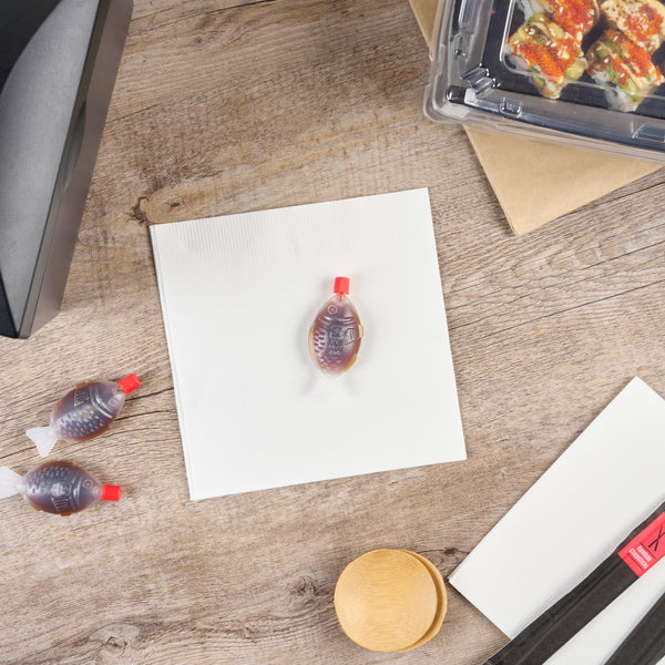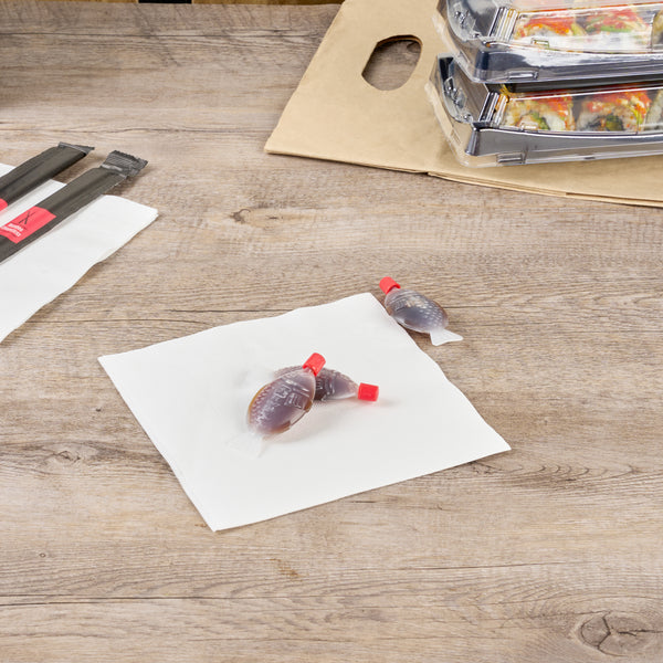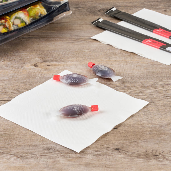 Efficiently serve condiments with disposable convenience. Bento Tek Mini Soy Sauce Bottles offer a disposable design, eliminating the need for washing and ensuring faster cleanup in busy kitchens. These plastic condiment containers are made from food-grade plastic, guaranteeing a safe and hygienic experience. These bottles are both lightweight and portable, making them perfect for easy transport in catering settings. As a soy sauce dispenser, they are freezer-safe, allowing chefs to preserve sauces or dressings longer, contributing to reduced food waste. The translucent design provides a simple yet practical way to monitor contents, making them suitable for holding a variety of liquids and sauces. Enhance your foodservice efficiency with these versatile mini bottles. Each order includes 1000 Bento Tek 8 ml Mini Soy Sauce Bottles.