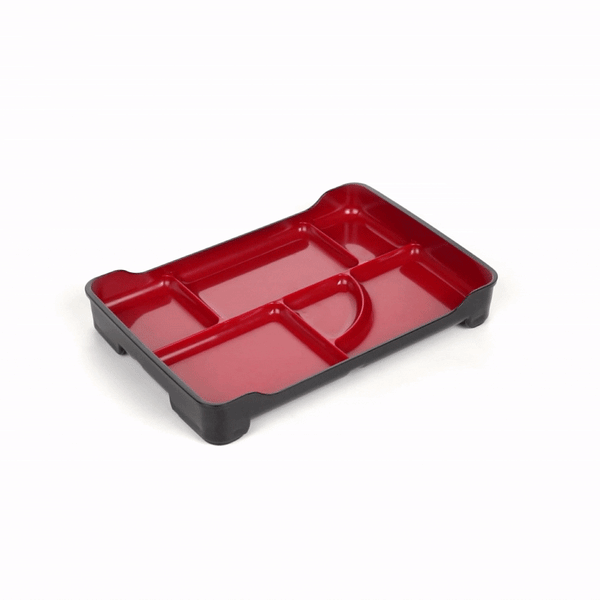BLACK AND RED JAPANESE STYLE BENTO PLATE - 5 COMPARTMENTS