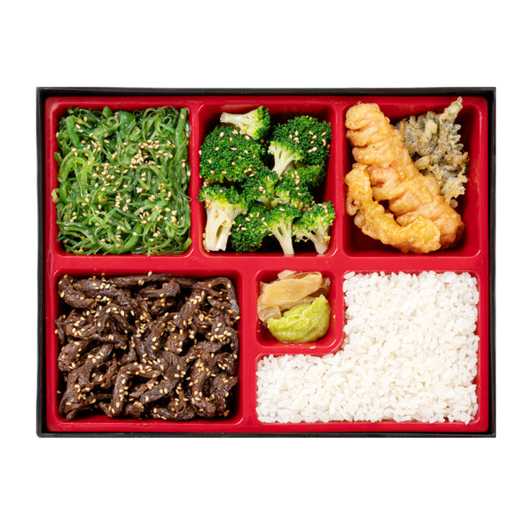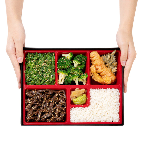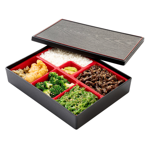 BLACK AND RED SMALL JAPANESE STYLE BENTO BOX - 6 COMPARTMENTS