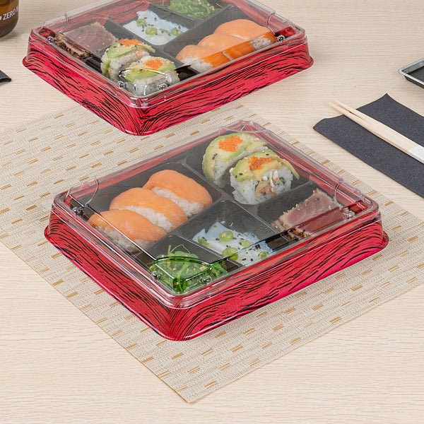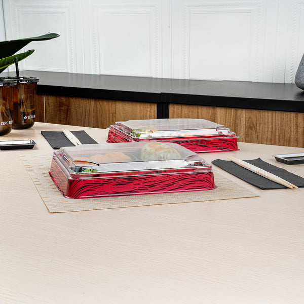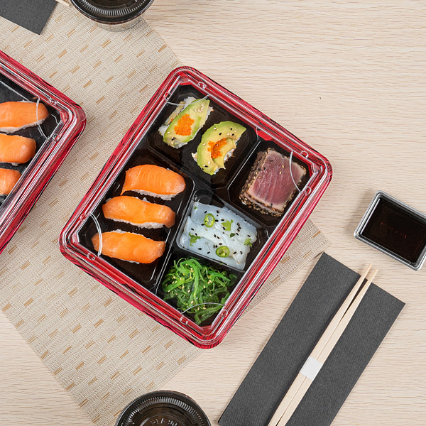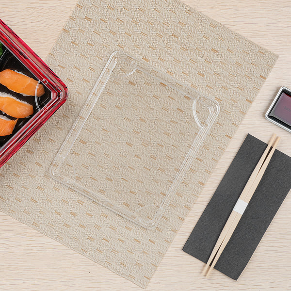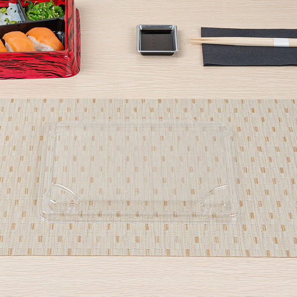 Elevate your food presentation with our Bento Tek Rectangle Clear Plastic Lids. These plastic lids perfectly fit onto compatible bento boxes (SKU: RWP1529B-50), making meals instantly portable for your customers. Crafted from premium plastic, these lids for food containers are durable and sturdy, providing a reliable seal to keep your food fresh and secure during transport. The clear finish of these container lids is great for showing off your exquisite food presentations. For an effortless cleanup after serving, these clear lids are disposable and can be discarded after use, minimizing the hassle. Ideal for eco-conscious foodservice establishments, these disposable lids are recyclable and help reduce your carbon footprint. Measuring 9 inches in length by 7.5 inches in width by 0.75 inches in height, these food container lids offer ample coverage for your dishes. Sold in a 50 count box. Bento boxes are available and sold separately.