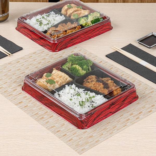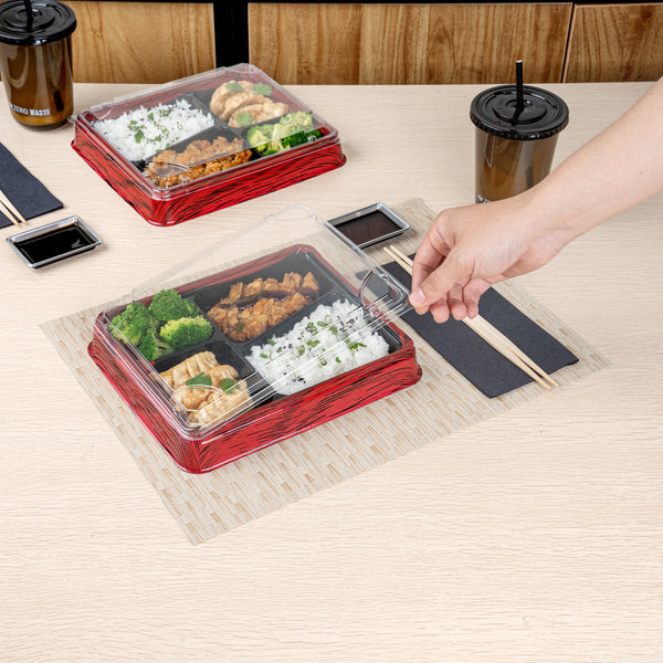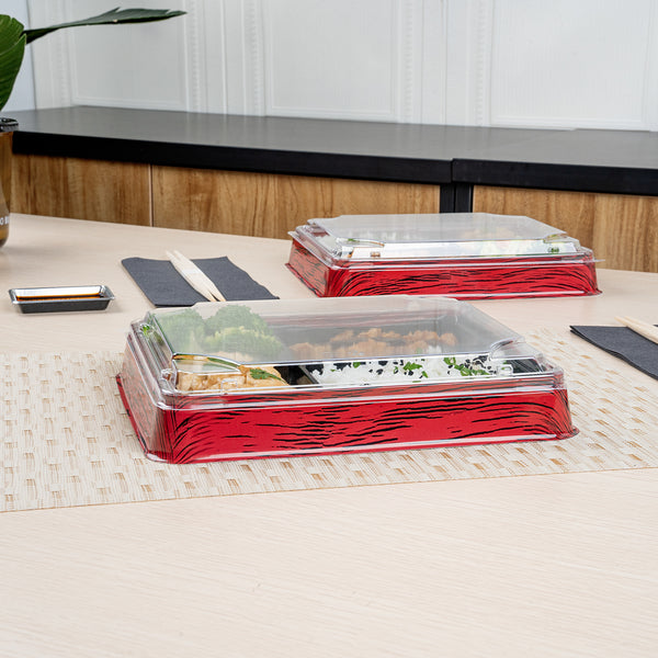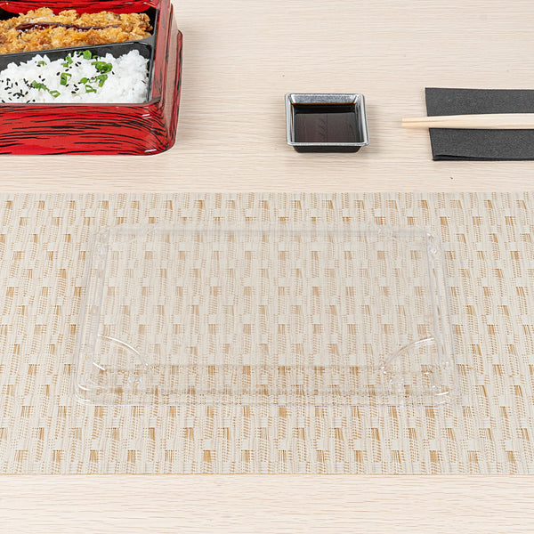 Make food transport a breeze with our Bento Tek Rectangle Clear Plastic Lids. These plastic lids perfectly fit onto compatible bento boxes (SKU: RWP1527B-50), making meals instantly portable for your customers. Crafted from premium plastic, these container lids are durable and sturdy, providing a reliable seal to keep your food fresh and secure during transport. The clear finish of these lids for food containers is great for showcasing your catering presentations. Designed for an effortless cleanup after serving, these clear lids are disposable and can be discarded after use. Ideal for eco-conscious foodservice establishments, these disposable lids are recyclable. Measuring 9 inches in length by 7.5 inches in width by 0.75 inches in height, these food container lids provide ample coverage for your meals. Sold in a 50 count box. Bento boxes are available and sold separately.