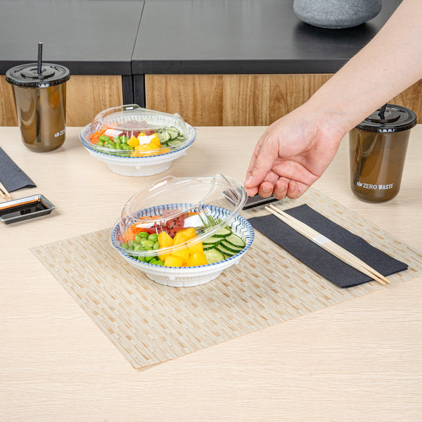 Enhance your food presentation and transport with our Bento Tek Round Clear Plastic Lids. These plastic lids perfectly fit onto compatible bowls (SKU: RWP1547W and RWP1551BR) to make meals instantly portable for your customers, ensuring convenience and efficiency in your service. Crafted from premium plastic, these container lids are durable and sturdy, providing a reliable seal to keep your food fresh and secure during transport. The clear finish of these lids for food containers is great for showing off your catering presentations, making them visually appealing. For an effortless cleanup after serving, these clear lids are disposable, saving valuable time in busy kitchens. Ideal for eco-conscious foodservice establishments, these disposable lids are recyclable, contributing to a more sustainable operation. Measuring 6.75 inches diameter by 1.25 inches in height, these food container lids are designed to meet your needs precisely. Sold in a 400 count box. Bowls are available and sold separately.