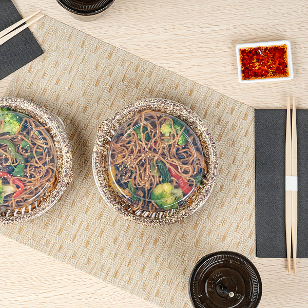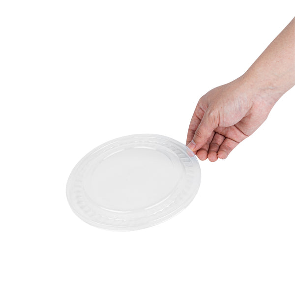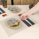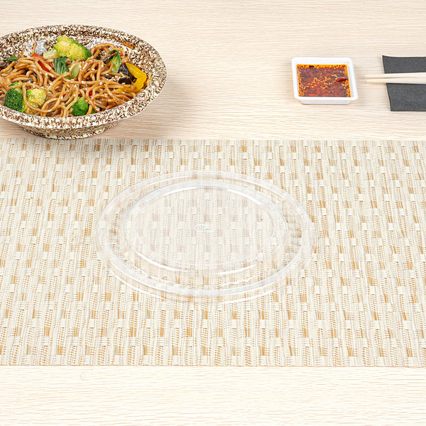 Seal in freshness with our Bento Tek Round Clear Plastic Lids. These plastic lids fit securely onto our collection of compatible Bento Tek bowls, making meals instantly portable for your customers. Created from premium plastic, these food container lids are durable and sturdy, forming a tight seal to keep your food fresh and secure during transport. The transparent finish of these container lids is ideal for showing off the your exquisite catering presentations. For an efficient cleaning experience after serving, these clear lids are disposable and can be discarded after use. Ideal for eco-conscious foodservice establishments, these disposable lids are recyclable and help reduce your carbon footprint. Measuring 7, these lids for food containers ensure a snug fit for your food containers. Sold in a 100 count box. Bowls are available and sold separately.