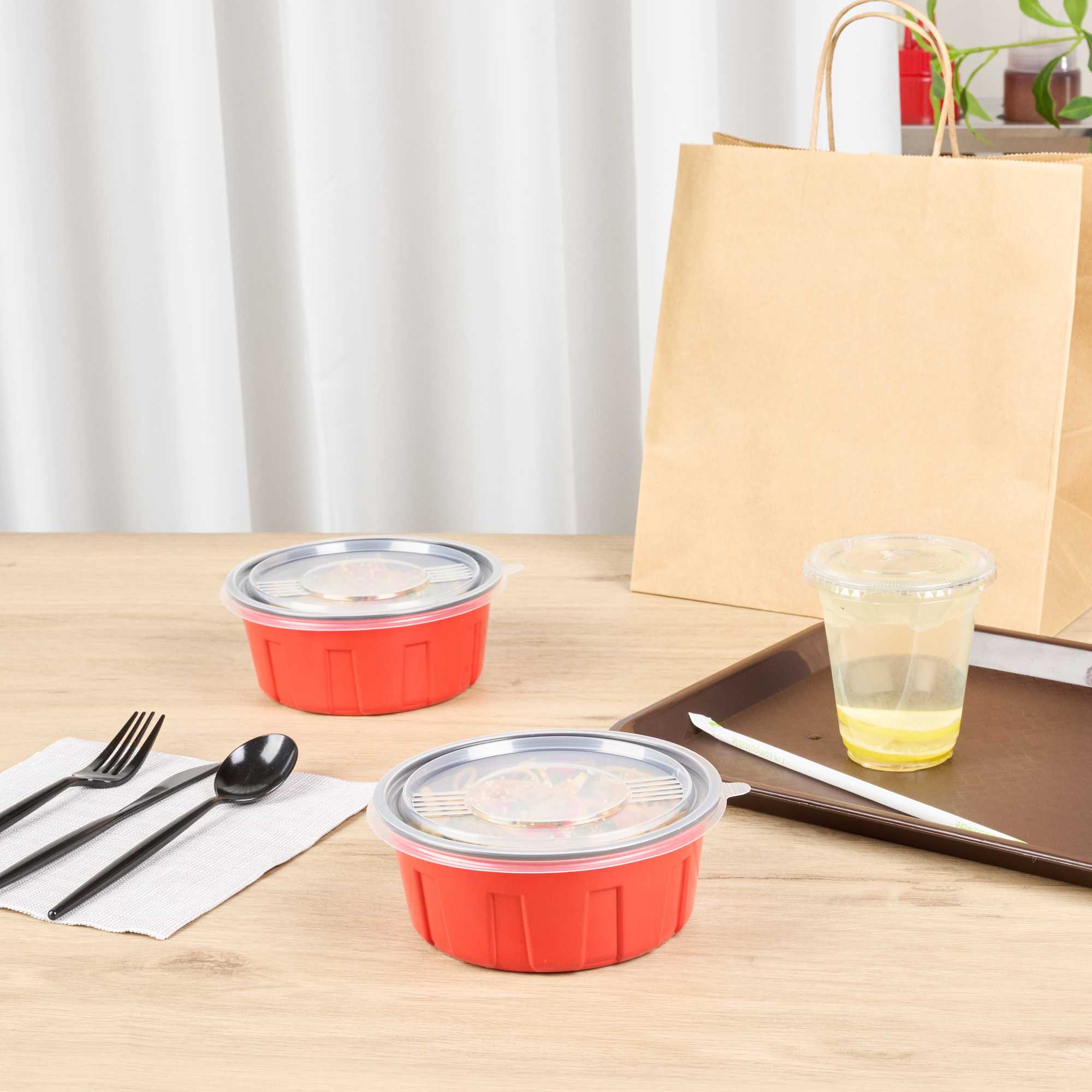 Pack your take out offerings with confidence using our Bento Tek Round Clear Plastic Lids. Designed to fit securely onto our compatible bento box (SKU: RWP1916R-50), these lids make meals easy to package, stack, and serve. Made from sturdy, crack-resistant plastic, they provide reliable protection during transport while maintaining the shape and integrity of your food. The clear finish allows for effortless identification of contents, streamlining order accuracy and enhancing visual appeal. An easy-pull tab of these disposable lids ensures quick removal for added convenience. These lids measure 6.1 inches in diameter. Sold in a 50 count box.