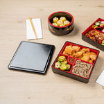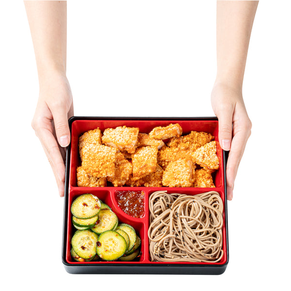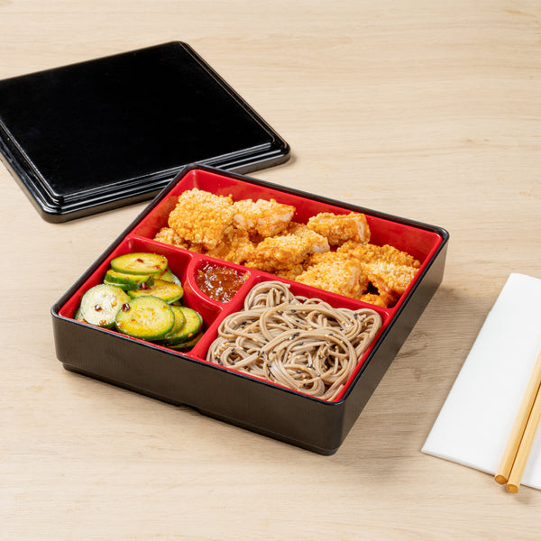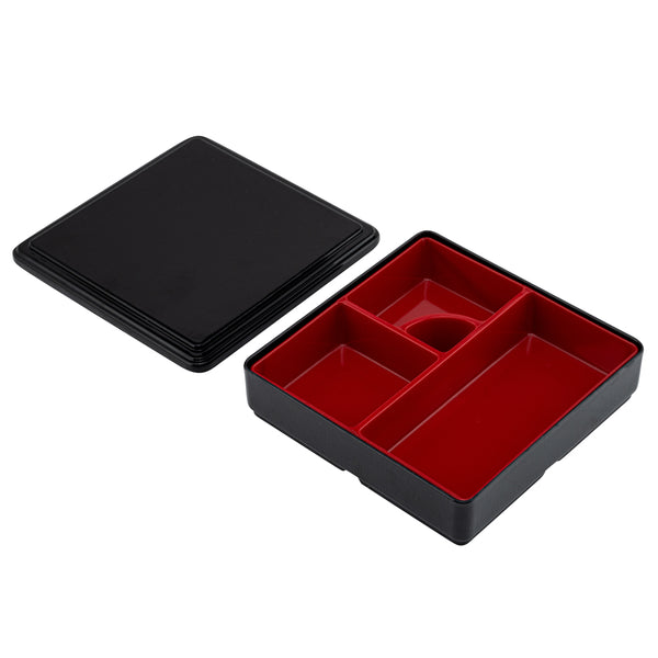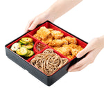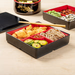 SQUARE BLACK AND RED JAPANESE STYLE BENTO BOX - 4 COMPARTMENTS