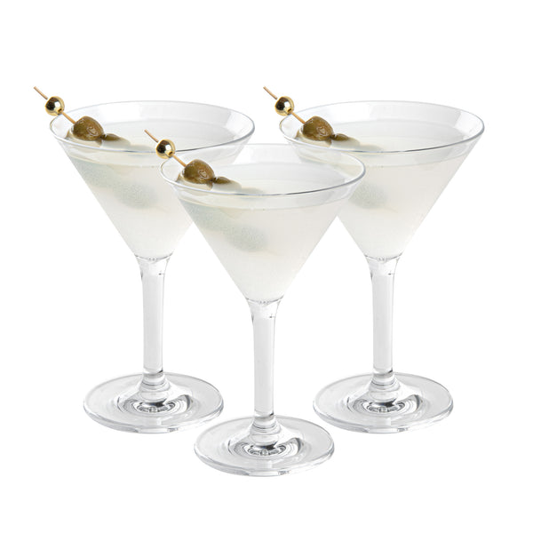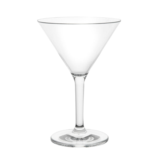 Prevent glass breakage in busy environments with shatterproof martini glasses. The Bev Tek Shatterproof Clear Polycarbonate Martini Glass offers the elegance of traditional glassware with the superior durability of polycarbonate, ensuring safety and longevity in any setting. With a 10-ounce capacity, this glass provides consistent drink portions, perfect for upscale bars or outdoor venues. The sturdy base of this polycarbonate martini glass enhances stability, minimizing spills and ensuring reliable performance on trays. Its smooth rim allows patrons to comfortably sip cold drinks, enhancing their cocktail experience. Dishwasher-safe, this clear plastic martini glass simplifies cleaning processes, boosting efficiency during peak hours. Perfect for catering events or poolside bars, this martini glass combines practicality with style. Sold in a 24 count box.