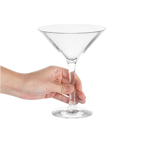Enhance cocktail presentations with sophisticated shatterproof safety. Bev Tek Plastic Martini Glasses combine the elegant appearance of glass with the durability of polycarbonate, making them perfect for high-traffic environments requiring a reliable plastic martini glass solution. Featuring a sturdy base, these glasses prevent tipping, ensuring reliable performance and stability during service. Their smooth rim provides a comfortable sipping experience, ideal for serving a modern martini coupe with cold drinks. Designed with a 10-ounce capacity, 5.28 inches width, and crystal-clear transparency, they beautifully showcase the vibrant colors of cocktails, enriching the drinking experience for patrons seeking a refined atmosphere. The dishwasher-safe design not only facilitates long-lasting use but also simplifies cleaning, saving time and labor costs in busy establishments. Invest in these shatterproof cocktail glasses to elevate your service quality with ease. Sold in a 24 count box.