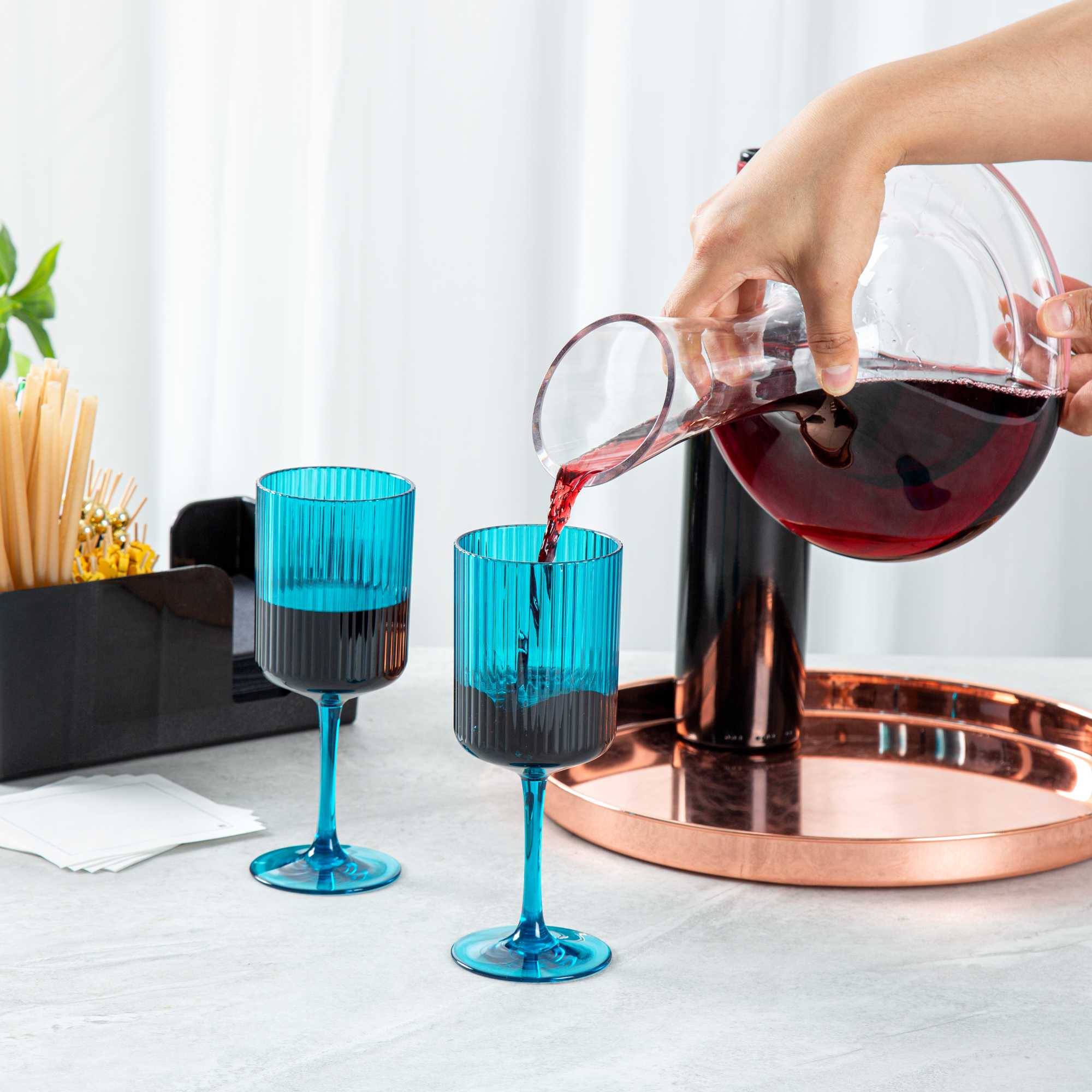 Elevate your beverage service with shatter-resistant elegance. Bev Tek Fluted Design Plastic Wine Glasses combine a thick design that withstands busy restaurant environments with a stunning blue hue to enhance any dining experience. Crafted from BPA-absent plastic, these glasses ensure safe beverage service, making them ideal for high-volume venues like hotels, restaurants, and clubs. The dishwasher-safe construction allows for quick, efficient cleaning, reducing turnaround times and enhancing operational efficiency in bustling settings. With a height of 7.6 inches, these stemmed plastic wine glasses elegantly present drinks, holding up to 12 ounces of your finest wines. Add these versatile glasses to your tableware collection to impress guests and streamline service. Each order includes 48 Bev Tek Fluted Design Plastic Wine Glasses.