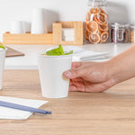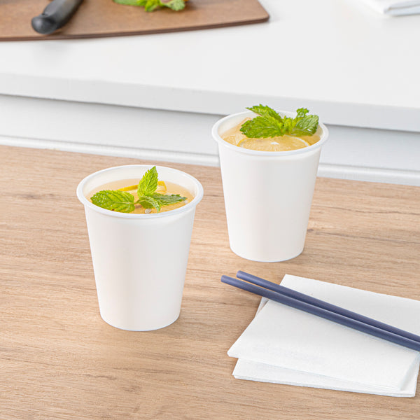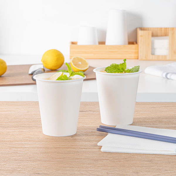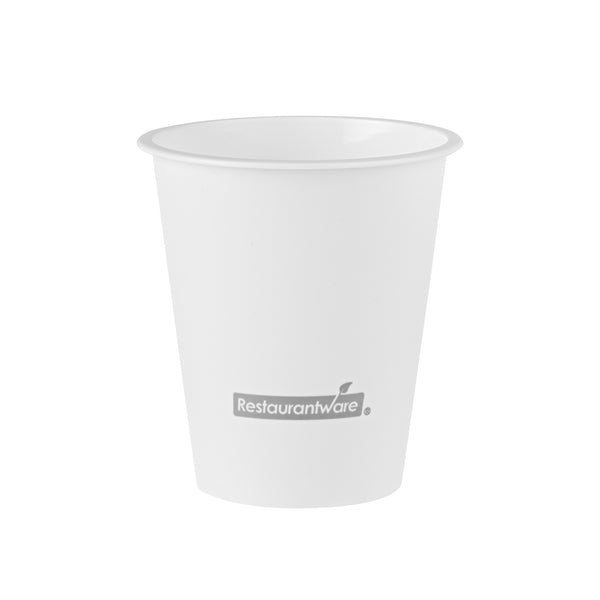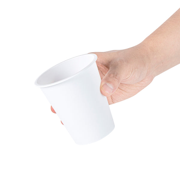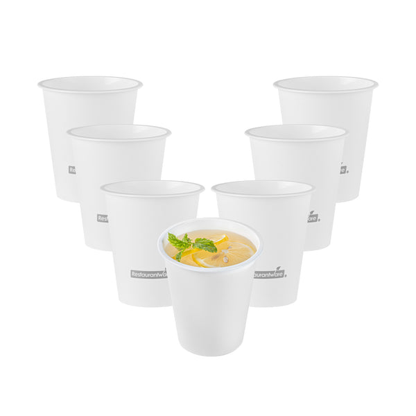 Serve tasty hot or cold beverages with our Bev Tek 12-ounce Round Matte White Plastic Hot / Cold Drinking Cups. Built from premium plastic, these recyclable plastic cups are great as single-use options and are top rack dishwasher safe for easy cleanup. These 12-ounce plastic cups have a matte white finish to effortlessly match any interior decor at your restaurant, diner, cafeteria, or other foodservice establishment. Featuring a rolled rim, these white disposable cups allow your customers to comfortably enjoy their beverages and easily seal their to go orders with our compatible lids (SKU: RWP0558) and (SKU: RWP0559). These microwave-safe coffee cups are great for serving coffee, iced water, tea, and other drinks with temperatures between 14 degrees Fahrenheit to 248 degrees Fahrenheit. Containing up to 12 ounces, these sturdy cups measure 3.5 inches in diameter and 4 inches in height and are ideal to use with coffee cup sleeves. Available in a 100 count box.