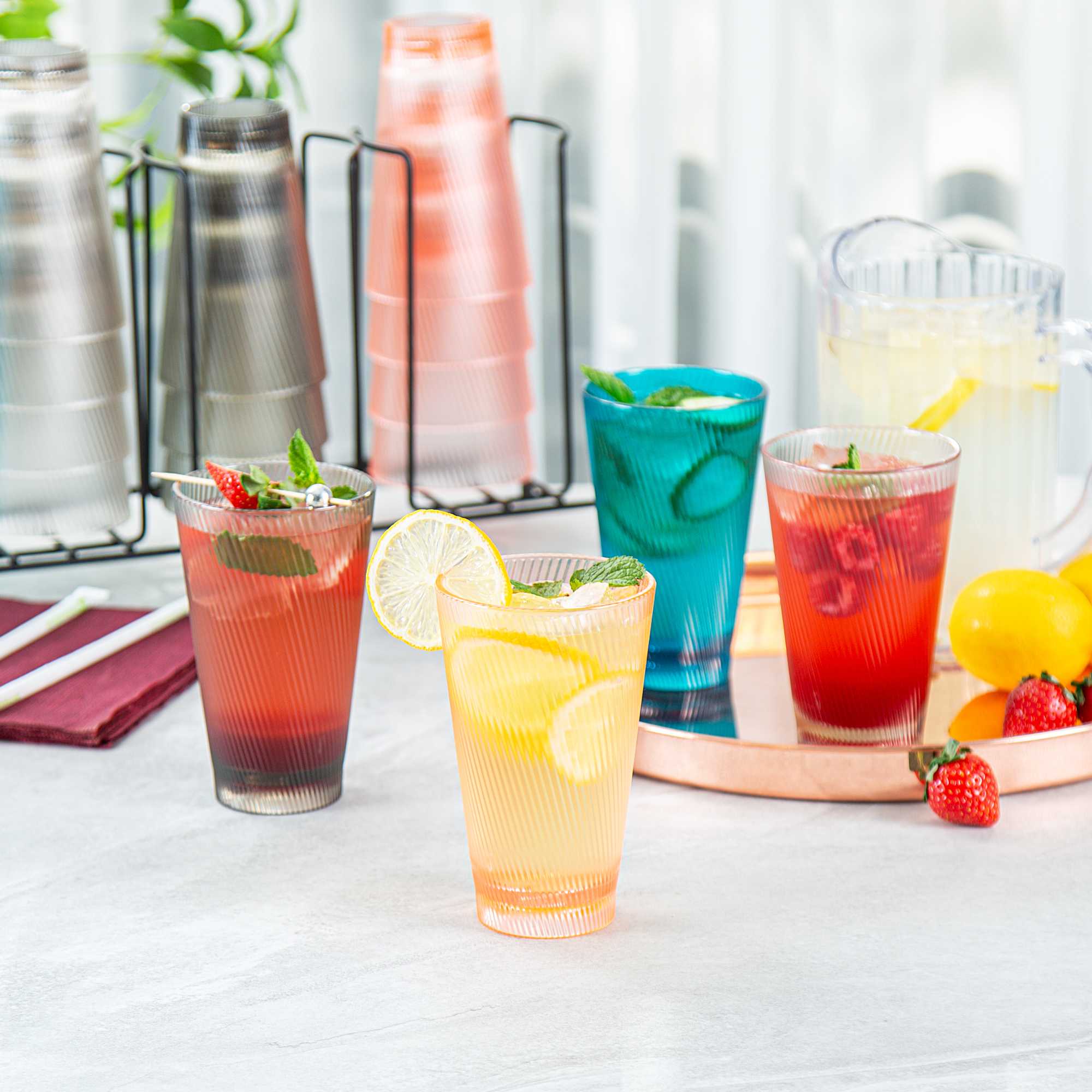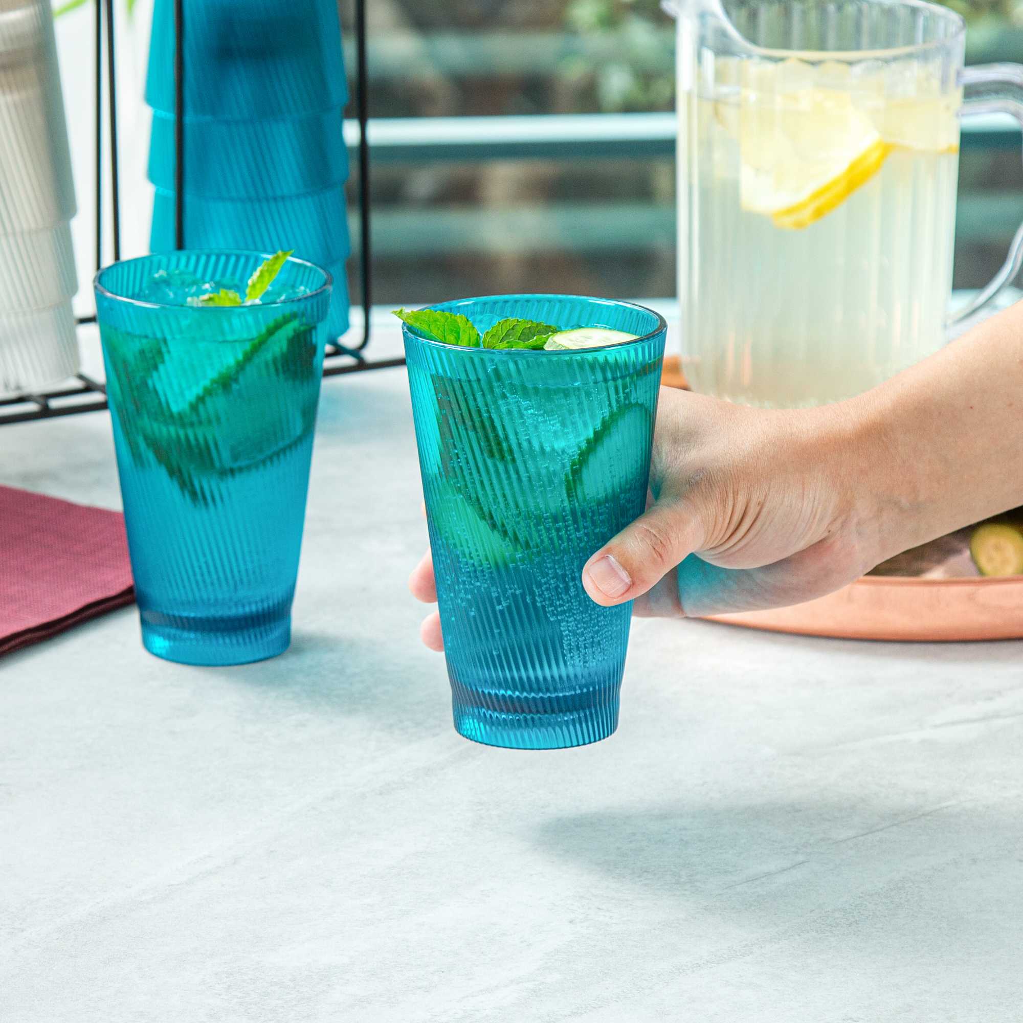 Enhance beverage service with shatterproof elegance. Bev Tek Unbreakable Plastic Tumblers are crafted from plastic, providing a safe and reliable option for serving drinks in a variety of settings. With a robust design, these unbreakable tumblers are perfect for enduring the demands of bustling foodservice settings like hotels and clubs, minimizing replacement costs due to breakage. Measuring 5.4 inches in height, these dishwasher safe tumblers make cleanup effortless, allowing staff to focus on delivering exceptional customer service. Choose these tumblers to elevate drink presentation with a vibrant blue hue that captures attention and enhances any table setting. Each order includes 6 Bev Tek Unbreakable Plastic Tumblers.