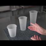 Stylishly serve tasty hot or cold beverages with our Bev Tek 16-ounce Round Frosted Clear Plastic Hot / Cold Drinking Cups. These disposable plastic cups are recyclable and can be placed on the top rack of your dishwasher for quick and easy cleanup. With a clear finish and frosted exterior, these clear plastic coffee cups effortlessly showcase your mouthwatering drinks at your cafeteria, restaurant, coffee shop, or other foodservice establishment. Featuring a rolled rim, these 16-ounce cups allow your customers to comfortably enjoy their hot or cold beverages. These sturdy plastic cups pair perfectly with our compatible lids (SKU: RWP0558 and SKU: RWP0559) to avoid spills and messes while handing out orders. Great for serving hot drinks with sleeves, these microwave-safe cups can hold beverages between 14F and 248F. Containing up to 16 ounces, these chic plastic cups measure 3.5 inches in diameter and 5 inches in height. Shipped in a 100 count box.