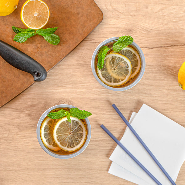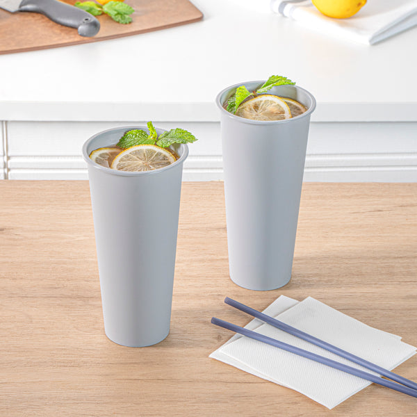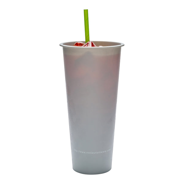 Comfortably enjoy delicious hot or cold beverages with our Bev Tek 24-ounce Round Matte Gray Plastic Hot / Cold Drinking Cups. Featuring a matte gray finish, these gray cups effortlessly complement the modern decor at your restaurant, cafe, buffet, or other foodservice establishment. Crafted from premium plastic, these disposable plastic cups are durable and recyclable. For convenient cleanup, these gray cups are built for top rack dishwasher use. These large drinking cups have a rolled rim that pairs perfectly with our high-quality lids (SKU: RWP0558) and (SKU: RWP0559) to quickly seal hot or cold drinks for takeout services. These chic plastic cups are microwave-safe which allows your customers to easily reheat and enjoy their coffee, hot chocolate, tea, and other warm beverages. It's recommended that you serve flavorful drinks in these disposable coffee cups with temperatures between 14 degrees Fahrenheit to 248 degrees Fahrenheit and pair hot beverages with sleeves. Measuring 3.5 inches in diameter and 7 inches in height, these gray matte cups can hold up to 24 ounces of liquid and are sold in a 100 count box.