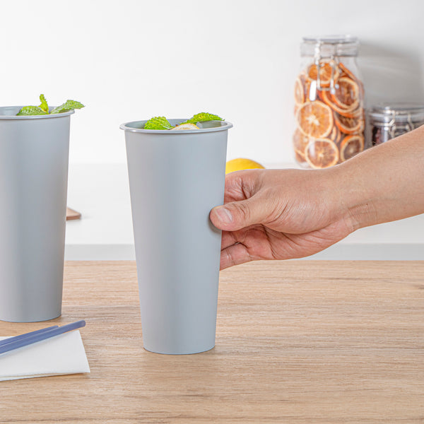 24 OZ ROUND MATTE GRAY PLASTIC HOT / COLD DRINKING CUP