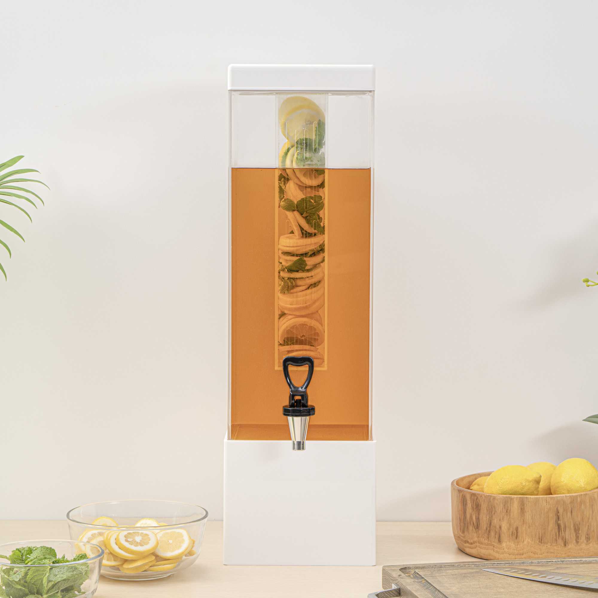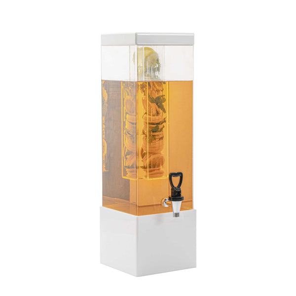 3 GAL CLEAR ACRYLIC BEVERAGE DISPENSER - INFUSION CORE, WHITE BASE
