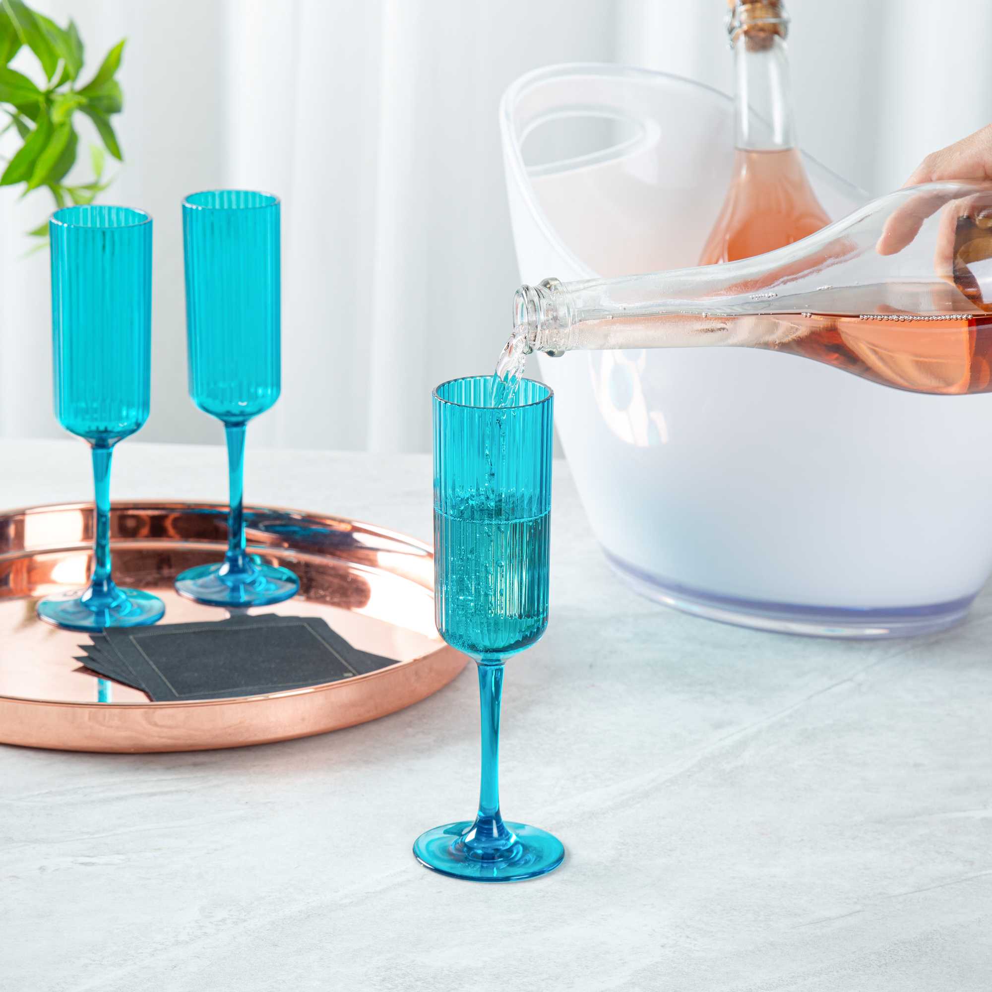6 OZ BLUE SAN PLASTIC CHAMPAGNE FLUTE
