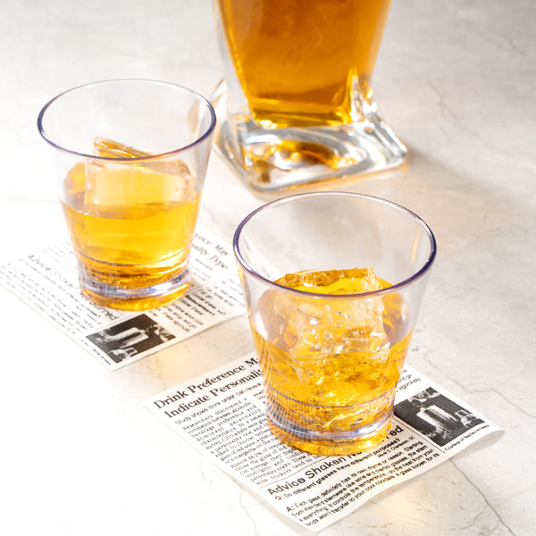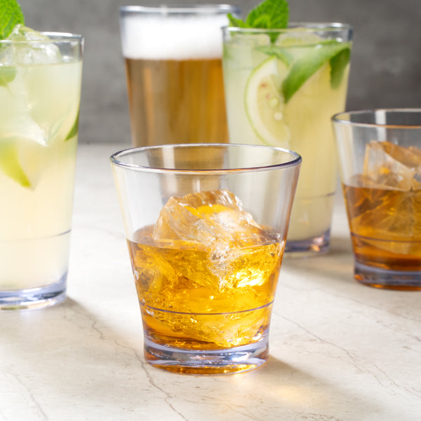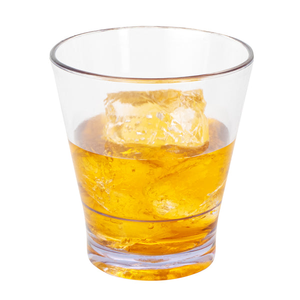 Offer the look of glass with the durability of plastic using our Bev Tek 9-ounce SAN Plastic Old Fashioned Glasses. Ideal for indoor and outdoor use, these plastic drinking glasses are shatterproof to avoid breaking or cracking. To keep your guests' drinks cold, these plastic rocks glasses are freezable. Crafted from SAN plastic, these plastic old-fashioned glasses cleanly serve beverages. Featuring a crystal clear finish, these plastic glasses provide a clear view for optimal drink presentation. For a shortened cleaning process, these plastic cocktail glasses are dishwasher-safe and can be reused for multiple uses. To save space in your establishment's storage area, these plastic cups are stackable. These plastic glasses measure 3.5 inches in diameter by 3.75 inches in height and hold up to 9 ounces of your spirits. Sold in a 12 count box.