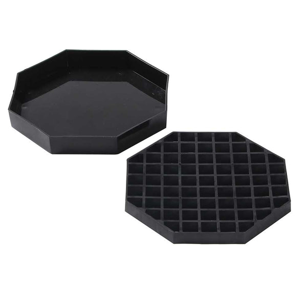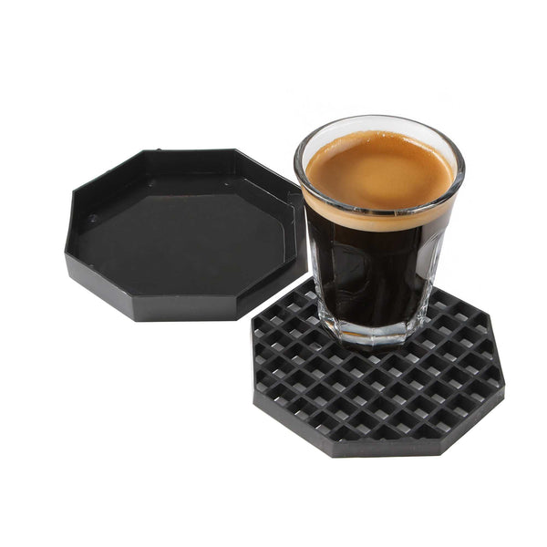 Catch drips from your beverage dispenser faucet with our Bev Tek Octagon Black Plastic Drip Tray. Designed with a removable grate, this drip tray can be wiped clean of any spots or drips to keep your beverage station clean. The octagon shape of this beverage drip tray can be placed against pitchers of any size. With a black finish, this octagon drip tray complements any existing coffee bar equipment at your cafe, bakery, or other foodservice establishment. Crafted from high-quality plastic, this black drip tray can be put in the dishwasher to speed up your cleaning process at the end of the day. This plastic drip tray provides ample space for holding disposable coffee cups and mugs. Measuring 5 inches in length, this coffee drip tray is sold in a 1 count box.
