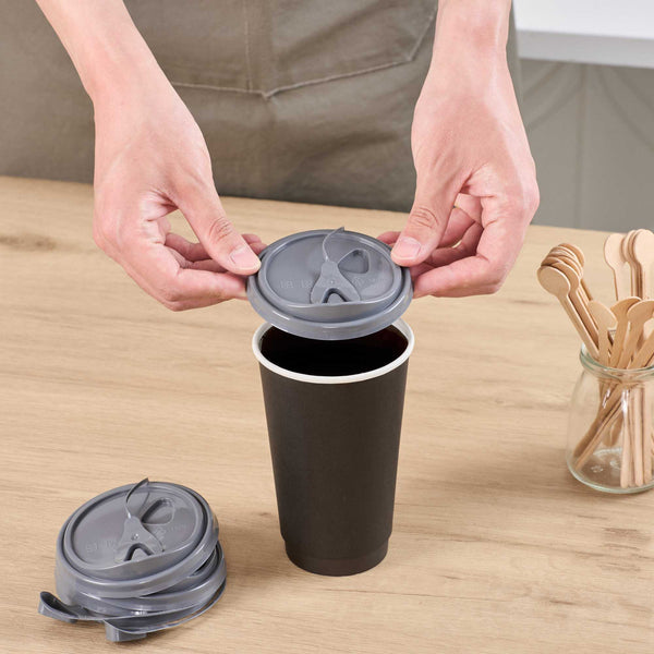 GRAY PLASTIC POP LOCK COFFEE CUP LID - FITS 8, 12, 16 AND 20 OZ