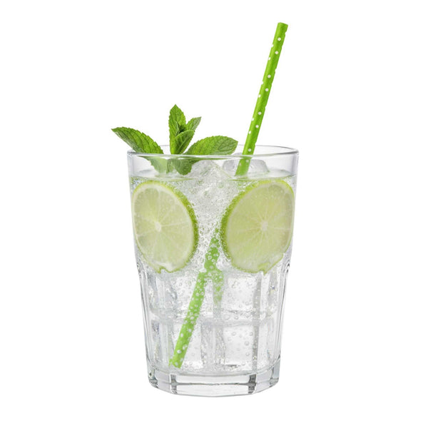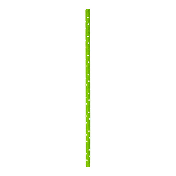 LIME GREEN PAPER STRAW - POLKA DOTS, BIODEGRADABLE, 6MM