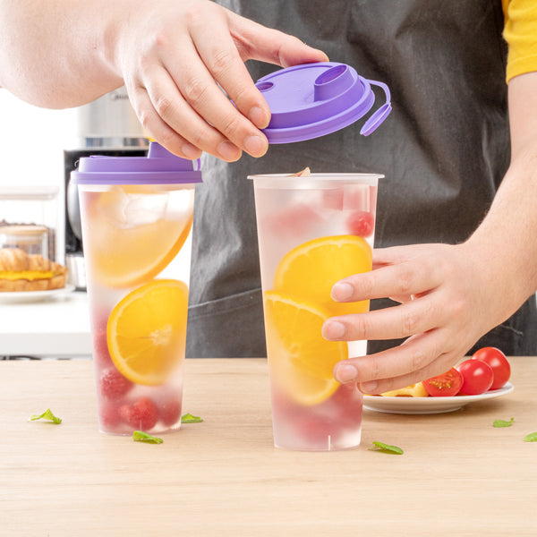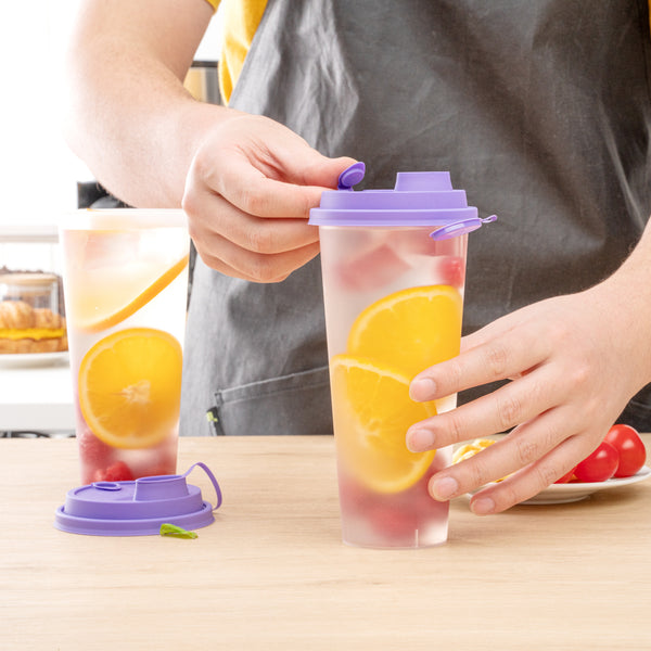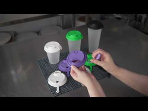 PURPLE PLASTIC 2-IN-1 CUP LID - WITH TWO PLUGS, FITS 12, 16, 24 OZ