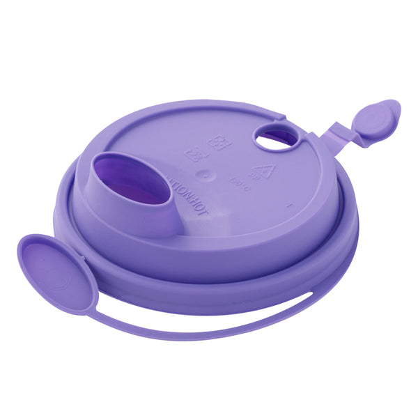 PURPLE PLASTIC 2-IN-1 CUP LID - WITH TWO PLUGS, FITS 12, 16, 24 OZ