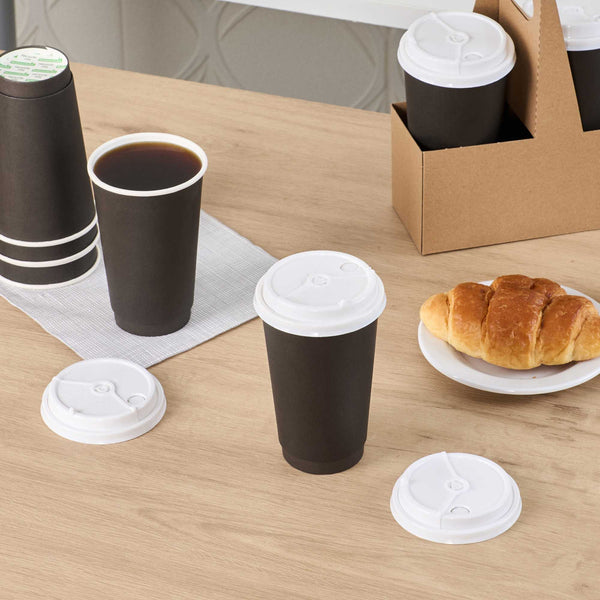 WHITE PLASTIC 2-IN-1 COFFEE CUP LID - FITS 8, 12, 16, 20 OZ