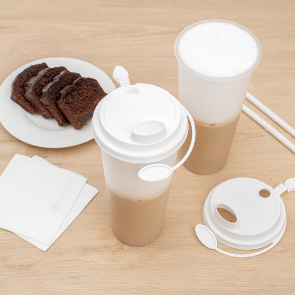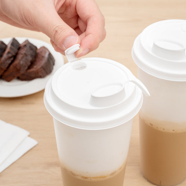 WHITE PLASTIC 2-IN-1 CUP LID - WITH TWO PLUGS, FITS 12, 16, 24 OZ