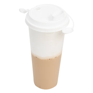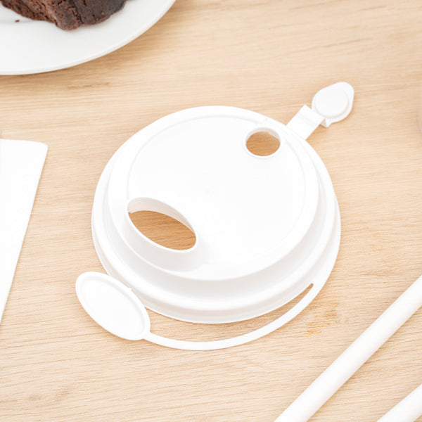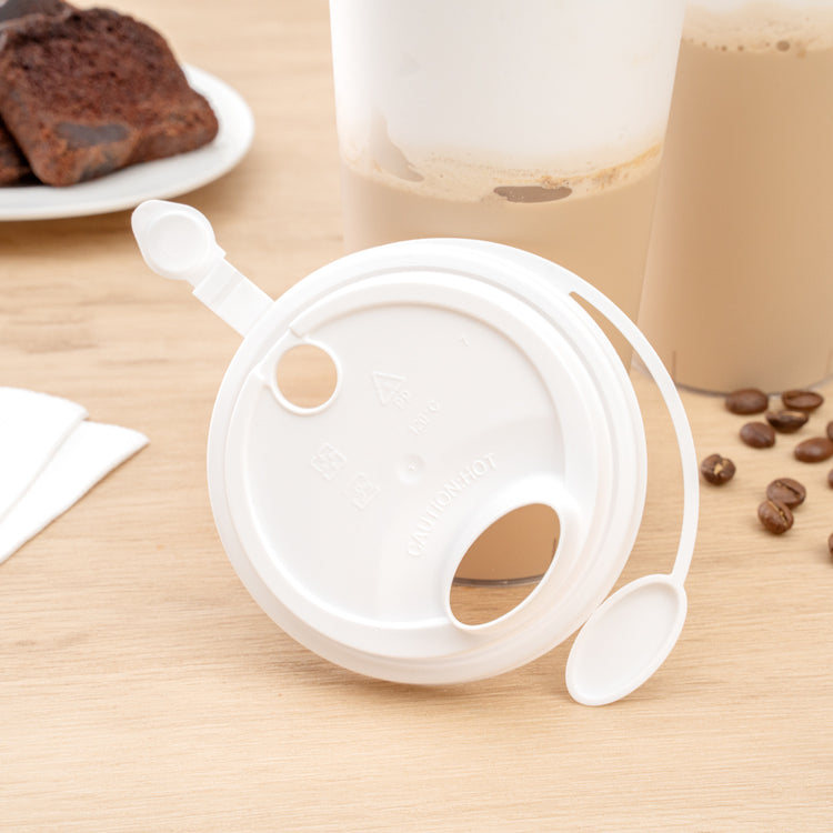 WHITE PLASTIC 2-IN-1 CUP LID - WITH TWO PLUGS, FITS 12, 16, 24 OZ