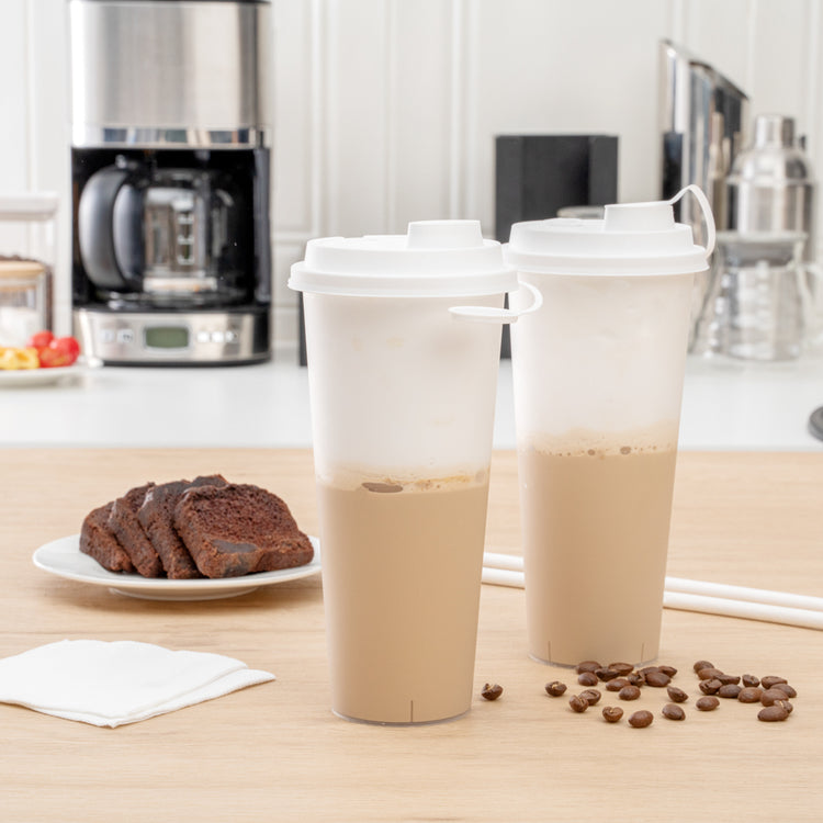 With a 2-in-1 design, these plastic cup lids feature a drinking spout opening alongside a straw slot so guests can enjoy their drinks however they prefer. Plus, they're equipped with stoppers to securely cover the opening not in use.