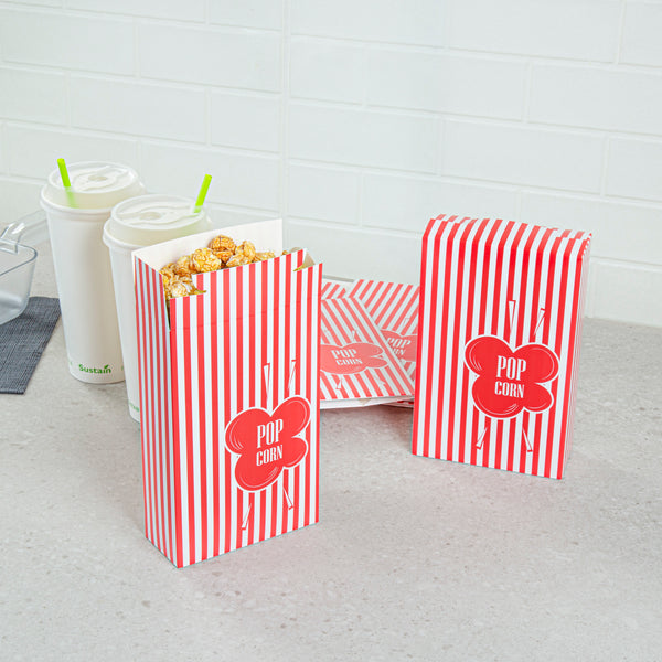Ensure delightful snacking experiences with resalable freshness. The Bio Tek Resalable Red Popcorn Box features a user-friendly resalable design that maintains the crispness of popcorn, making it ideal for to-go popcorn sales. This vintage popcorn box showcases playful red and white stripes that draw the attention of carnival-goers and movie enthusiasts alike, enhancing the nostalgic atmosphere of your venue. With a convenient wide opening, this theater popcorn box streamlines service during peak hours, perfect for concession stands aiming for efficiency. Crafted from biodegradable and recyclable paper, each box supports eco-friendly practices while also being greaseproof, ensuring a clean and enjoyable experience for patrons. Its dimensions of 4.8 inches in length, 2 inches in width, and 7.5 inches in height make it a versatile choice for various popcorn serving needs. Each order includes 400 Bio Tek Resalable Red Popcorn Boxes.